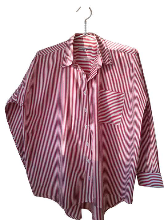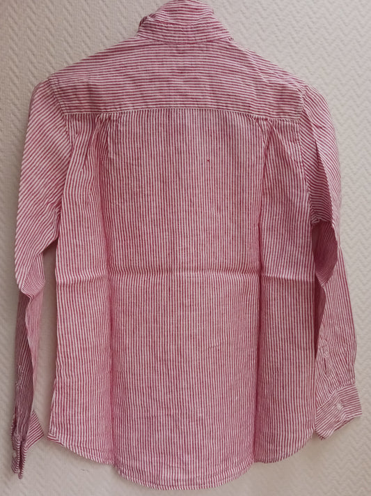 Chemisier manches courtes oversize lin rayé blanc/beige