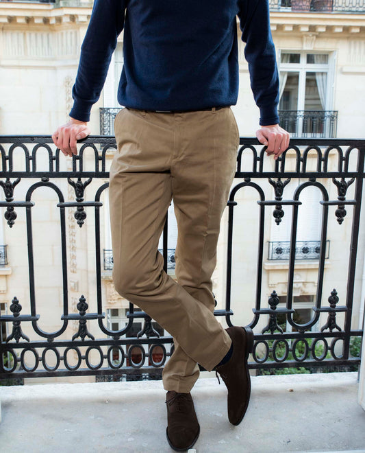Pantalon twill coton beige