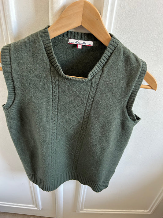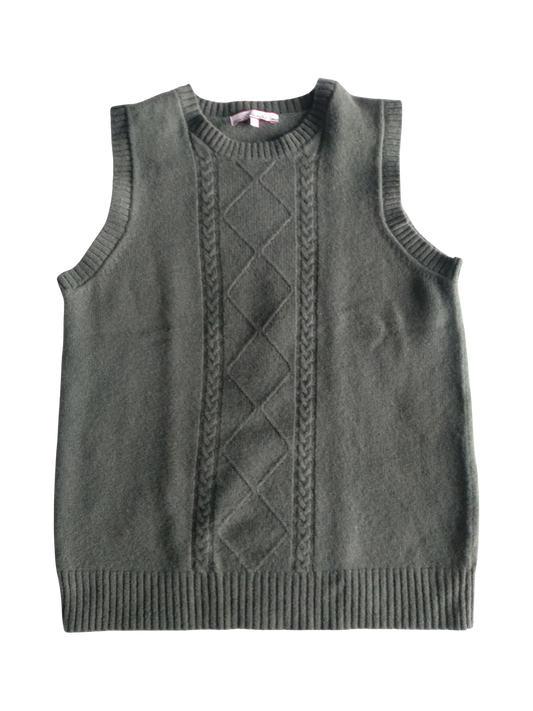 Acanthe Parispull col rond sans manches femme kaki en 100% laine