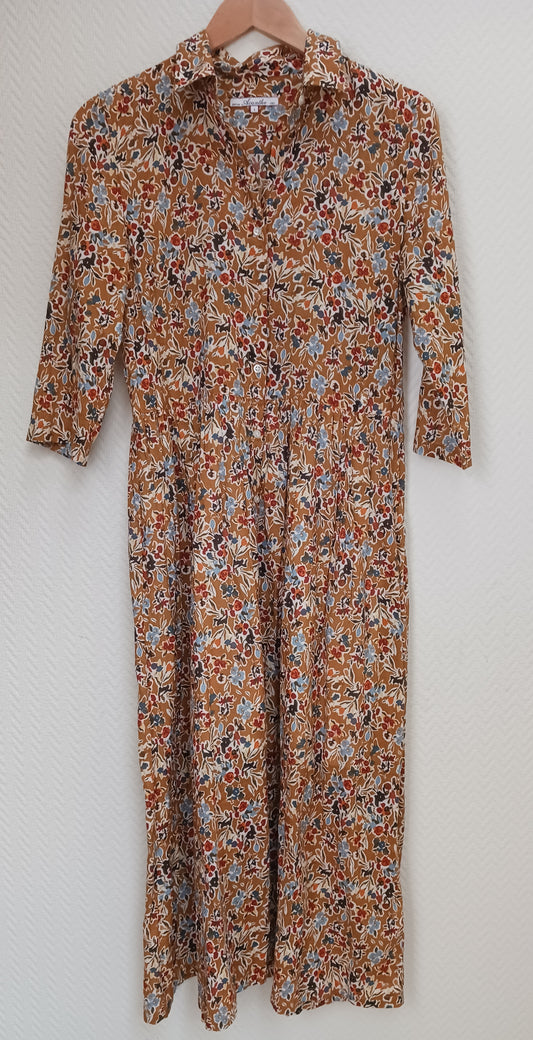 robe chemisier longue voile de coton imprimé fleur fond ocre