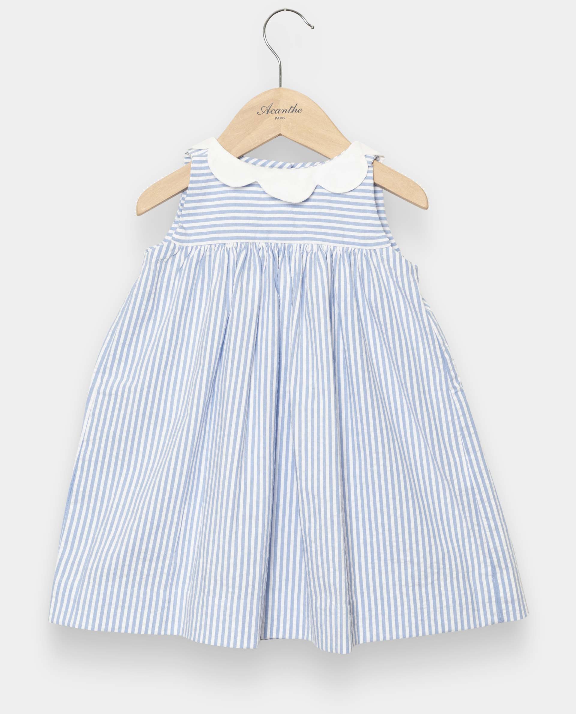Robe sans manches. Col arrondi en popeline blanche. Bas froncé