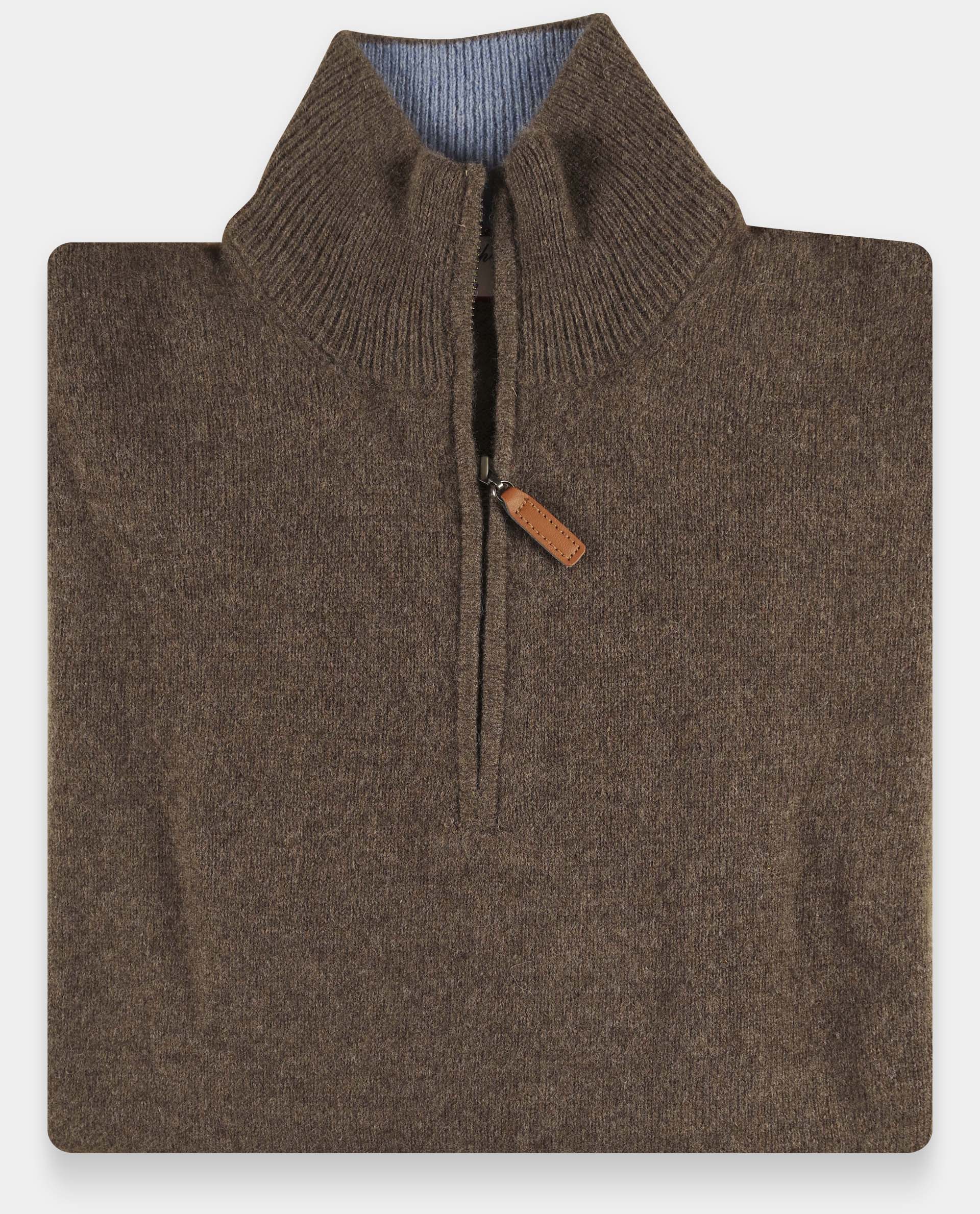 Pull en jersey. Col zippé avec intérieur contrasté. Manches longues. Finition bord-côtes. Pure laine d'agneau.