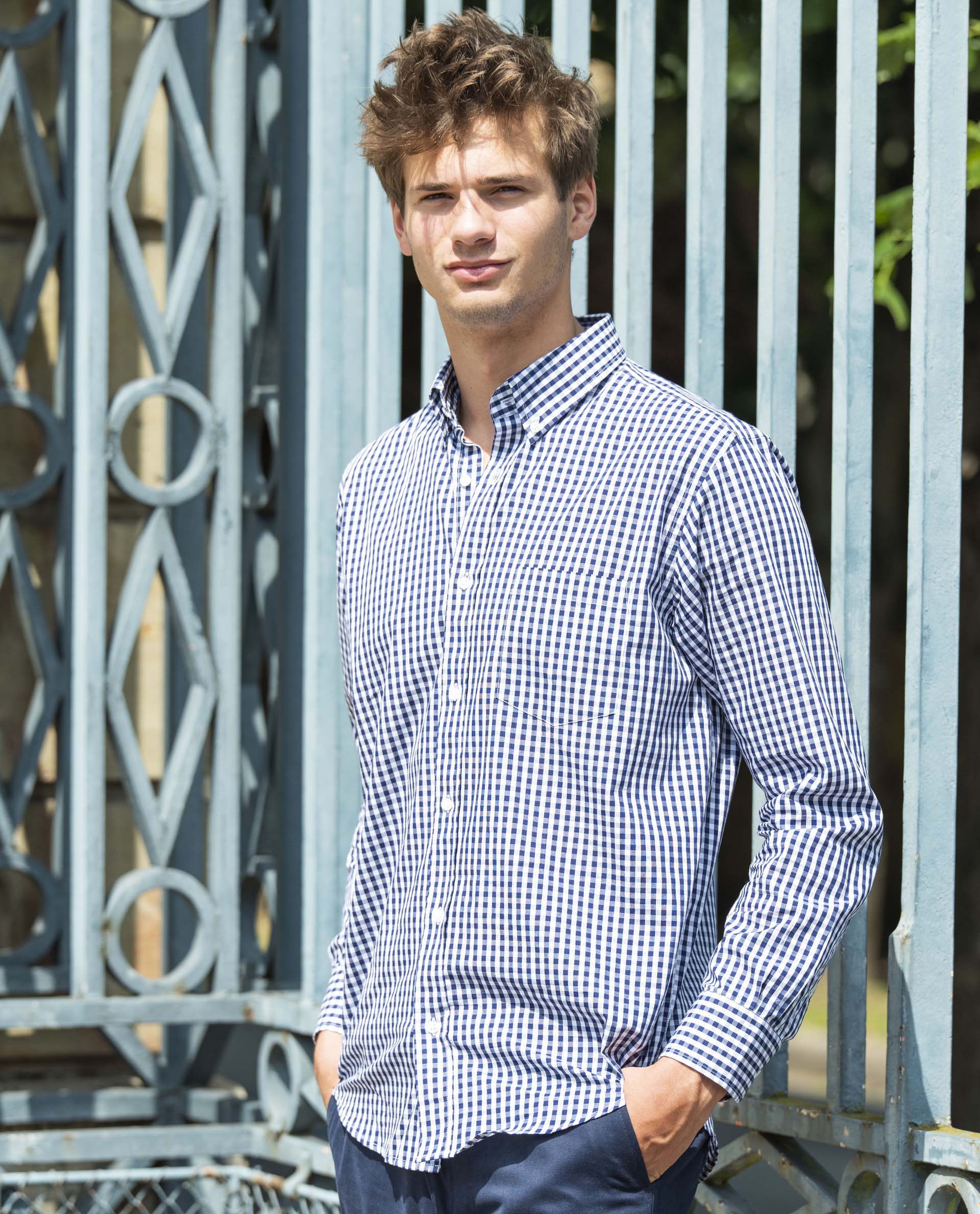 Chemise homme col boutonné en popeline coton. Poche poitrine. 1 pli rond carrure dos. Pans arrondis au bas.