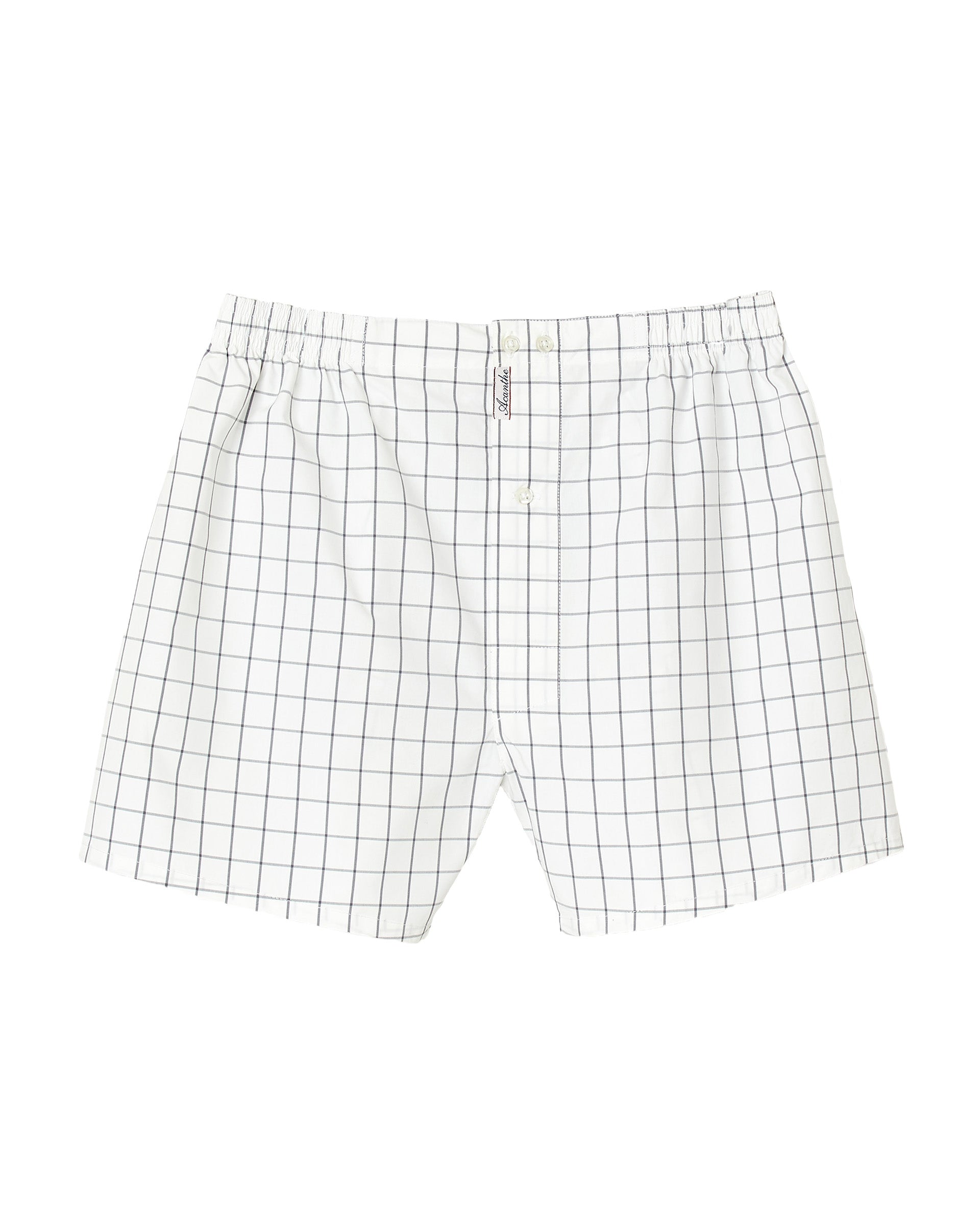 Caleçon pur coton, forme américaine. Ceinture élastiquée, braguette fermée par 3 boutons