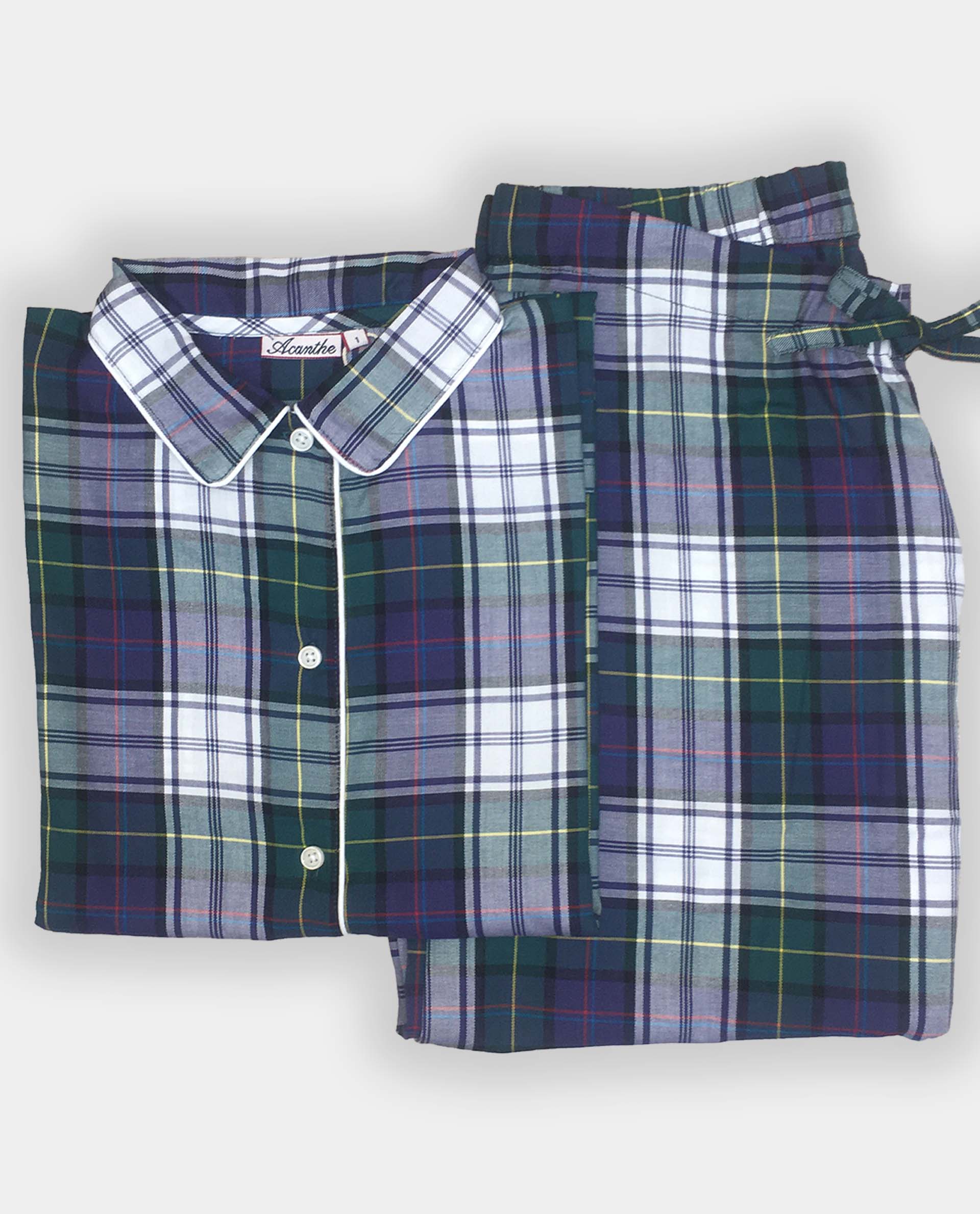 Pyjama manches longues. Finitions passepoil. Pantalon taille coulissée.