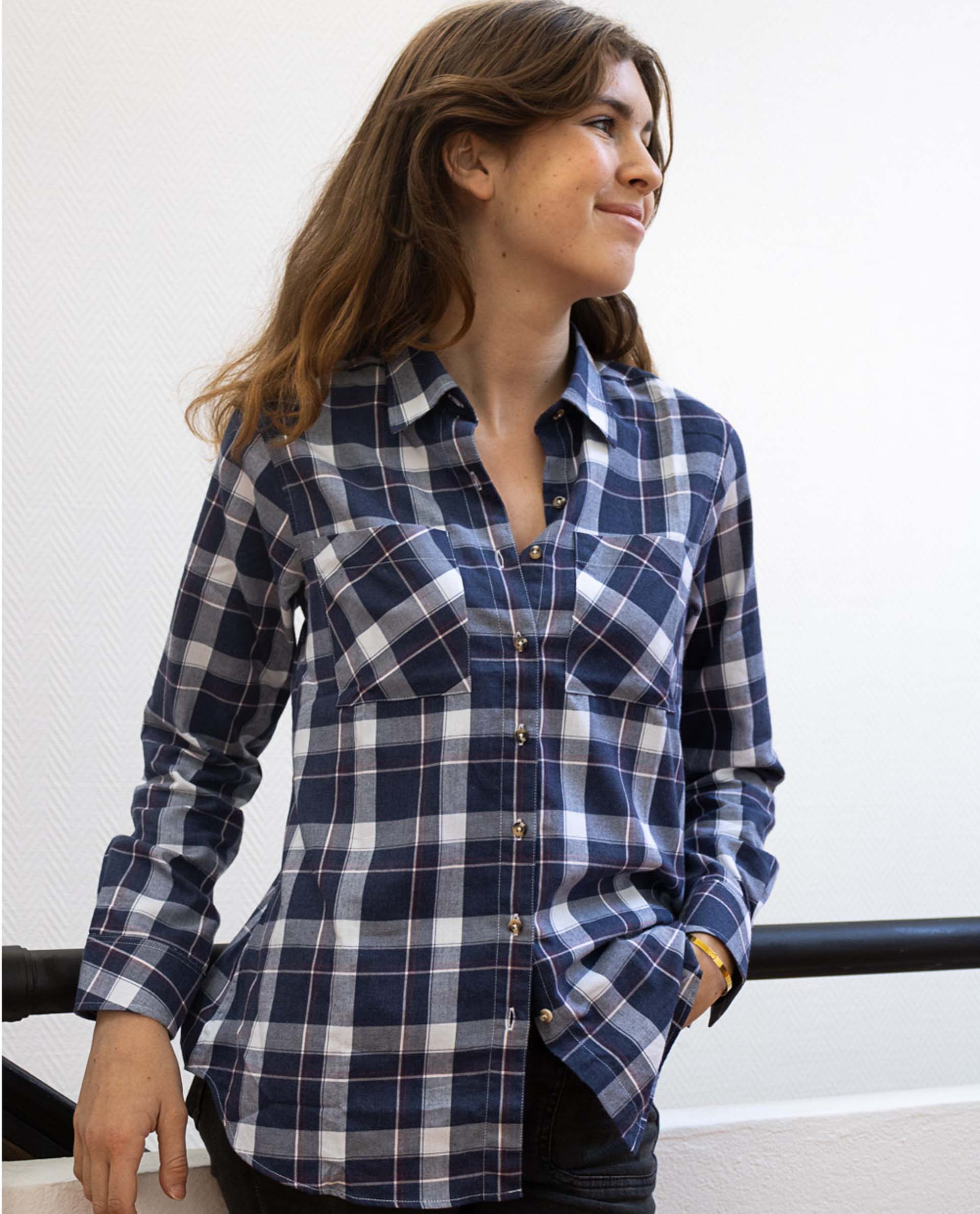 chemisier flanelle poches plaquées carreaux marine/bordeaux
