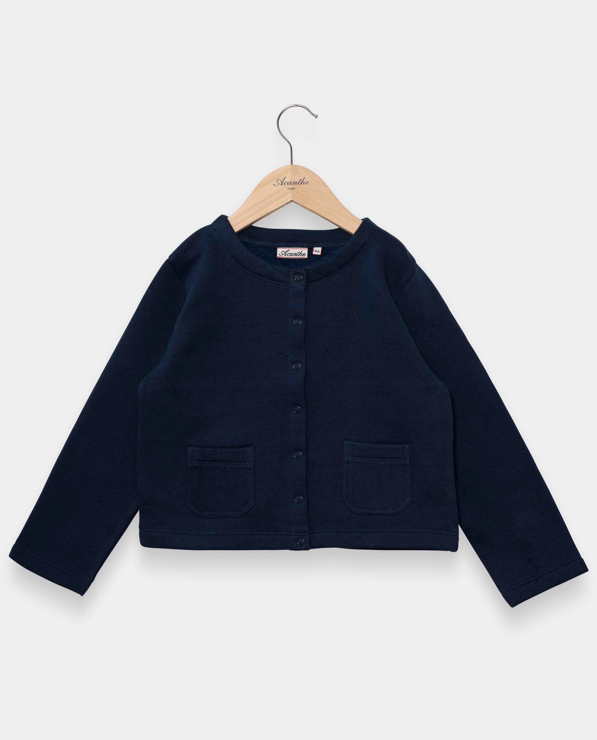 Cardigan fille en molleton. Col rond. Manches longues. Boutonné