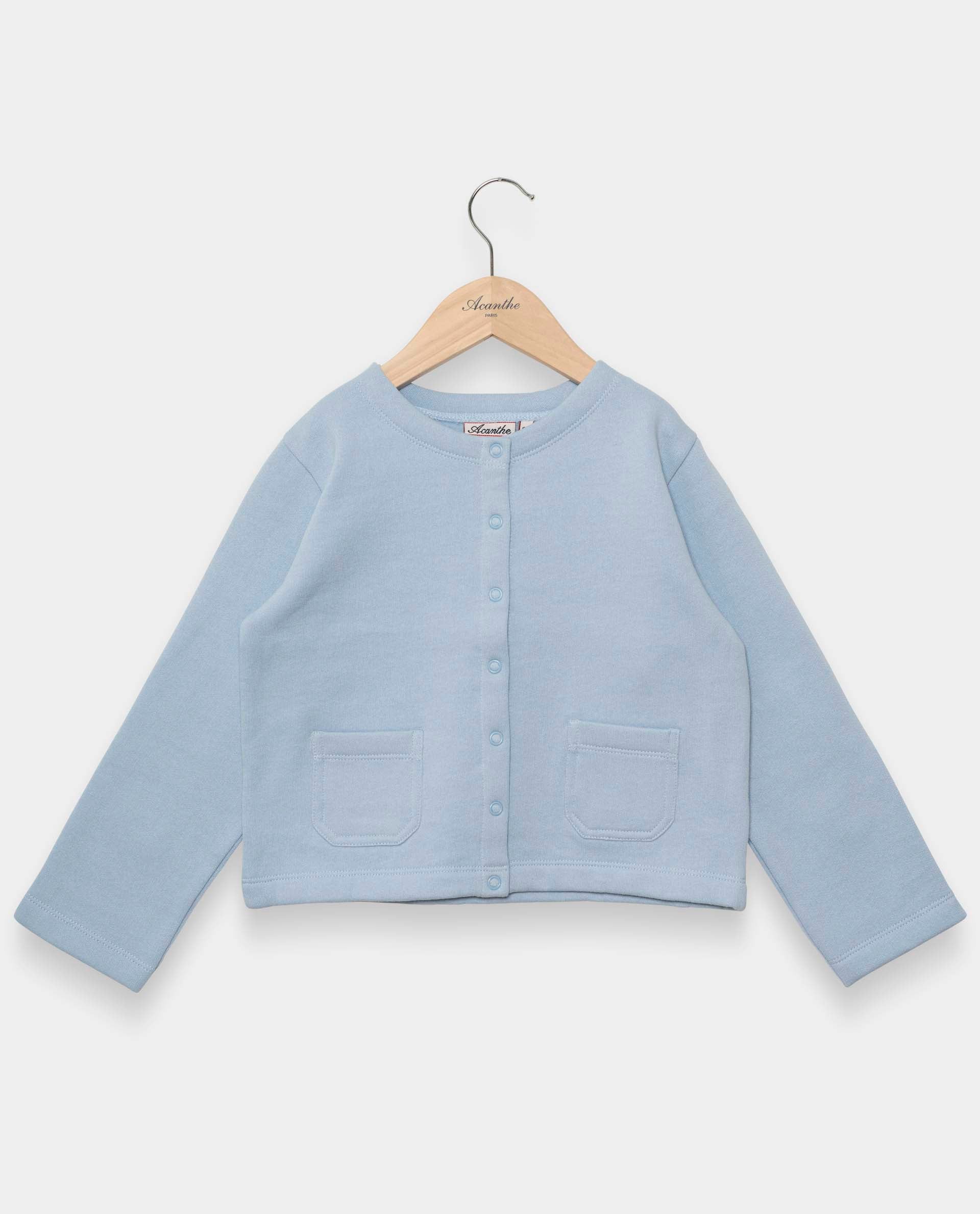 Cardigan fille en molleton. Col rond. Manches longues. Boutonné