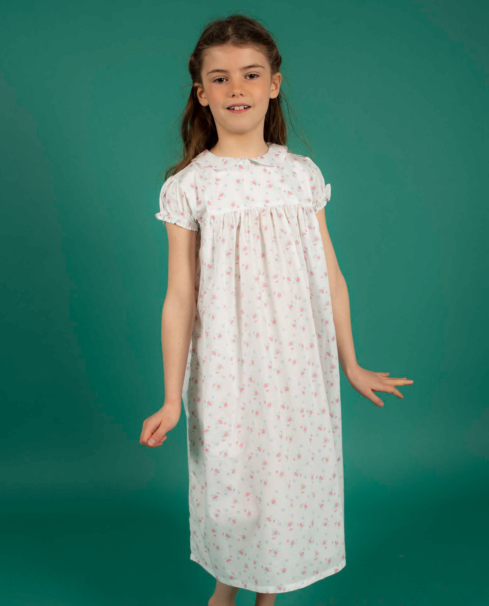 Chemise de nuit fille, taille haute, col claudine et manches ballon é