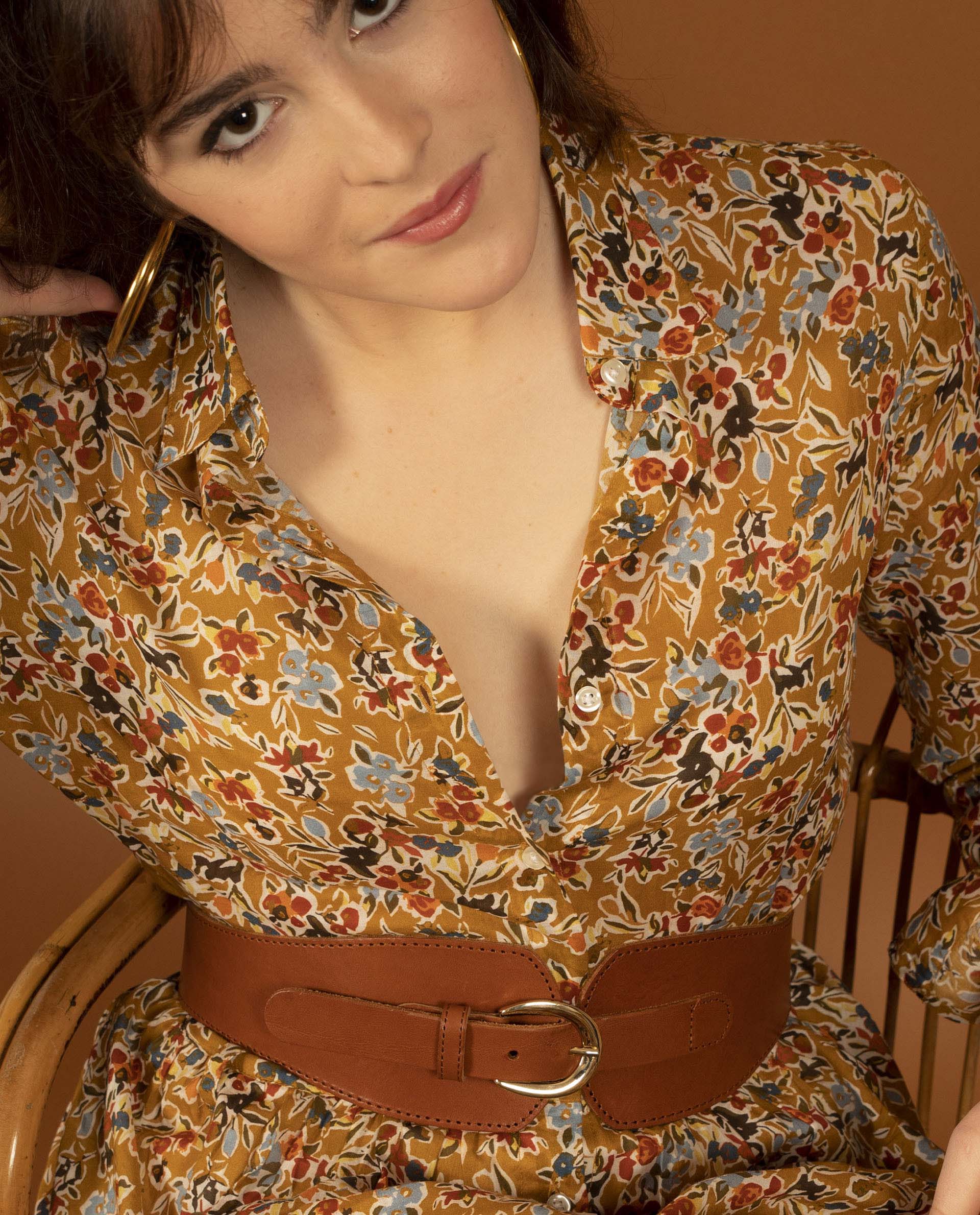 Ceinture large en cuir pleine fleur de vachette. Boucle ovale doré