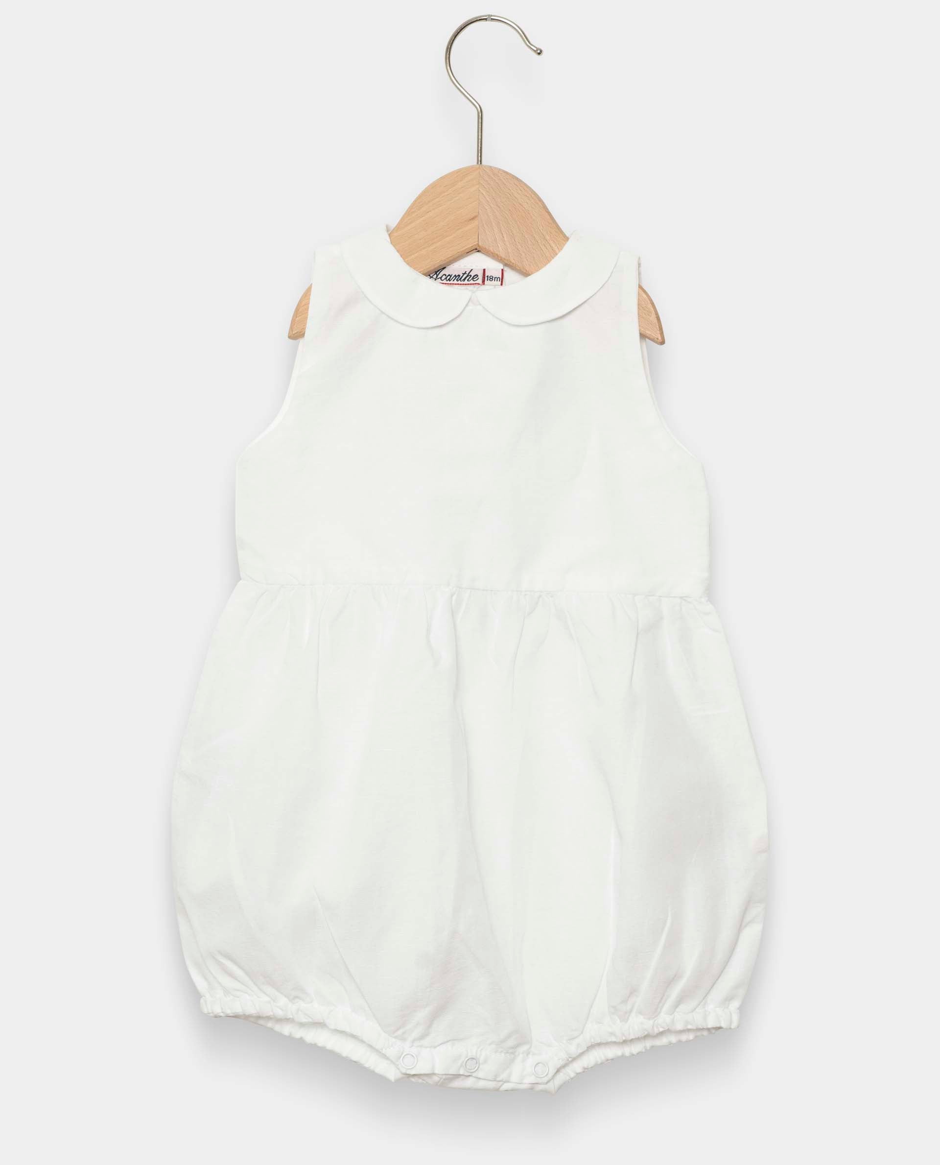 barboteuse col rond manches ballon Blanc