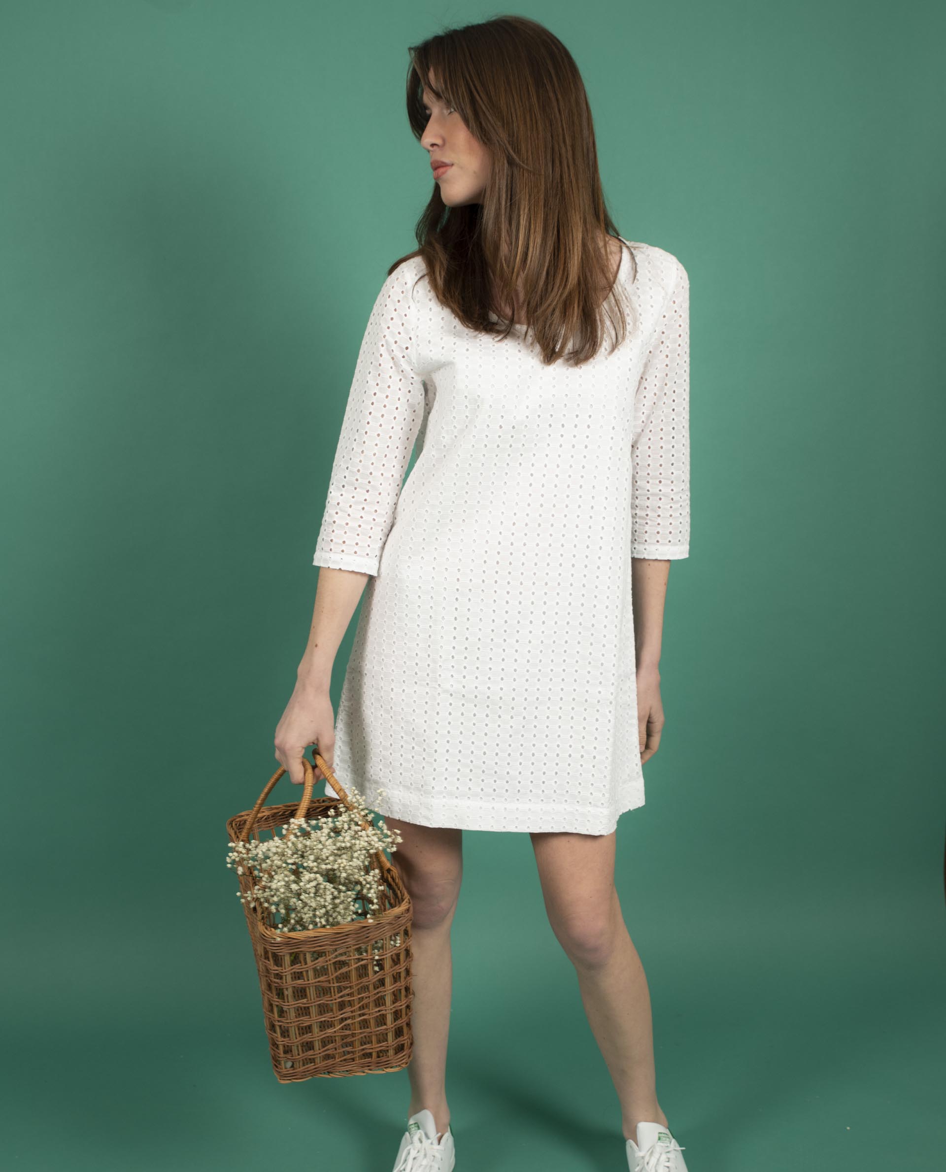 robe trapèze broderie anglaise Blanc