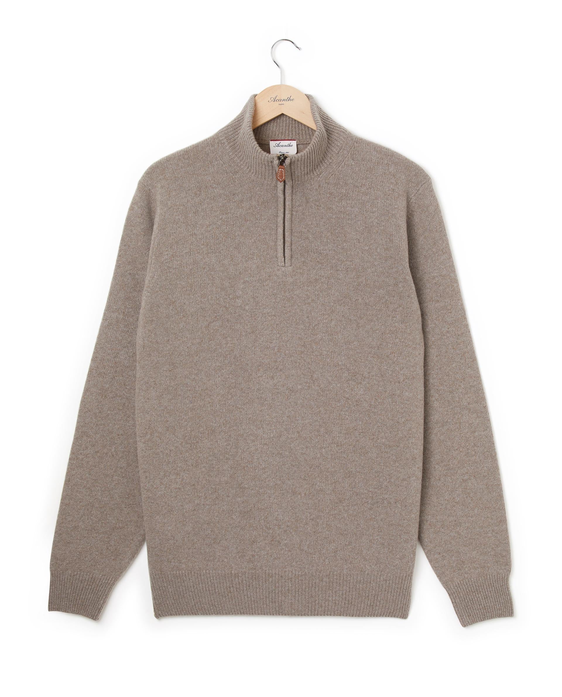 Pull col zippé. Fintion bord-côtes. Laine 90 mérinos/10 cachemire.