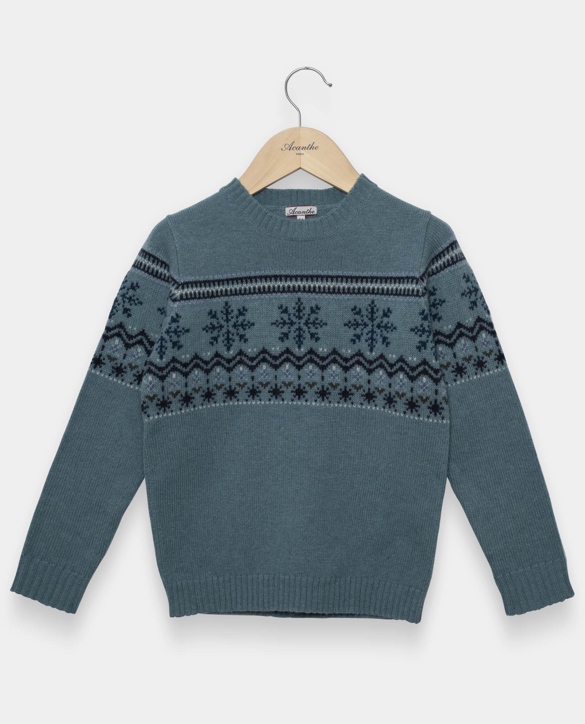 Pull jacquard encolure ronde. Manches longues. Finition bord-côtes. Pure laine d'agneau.