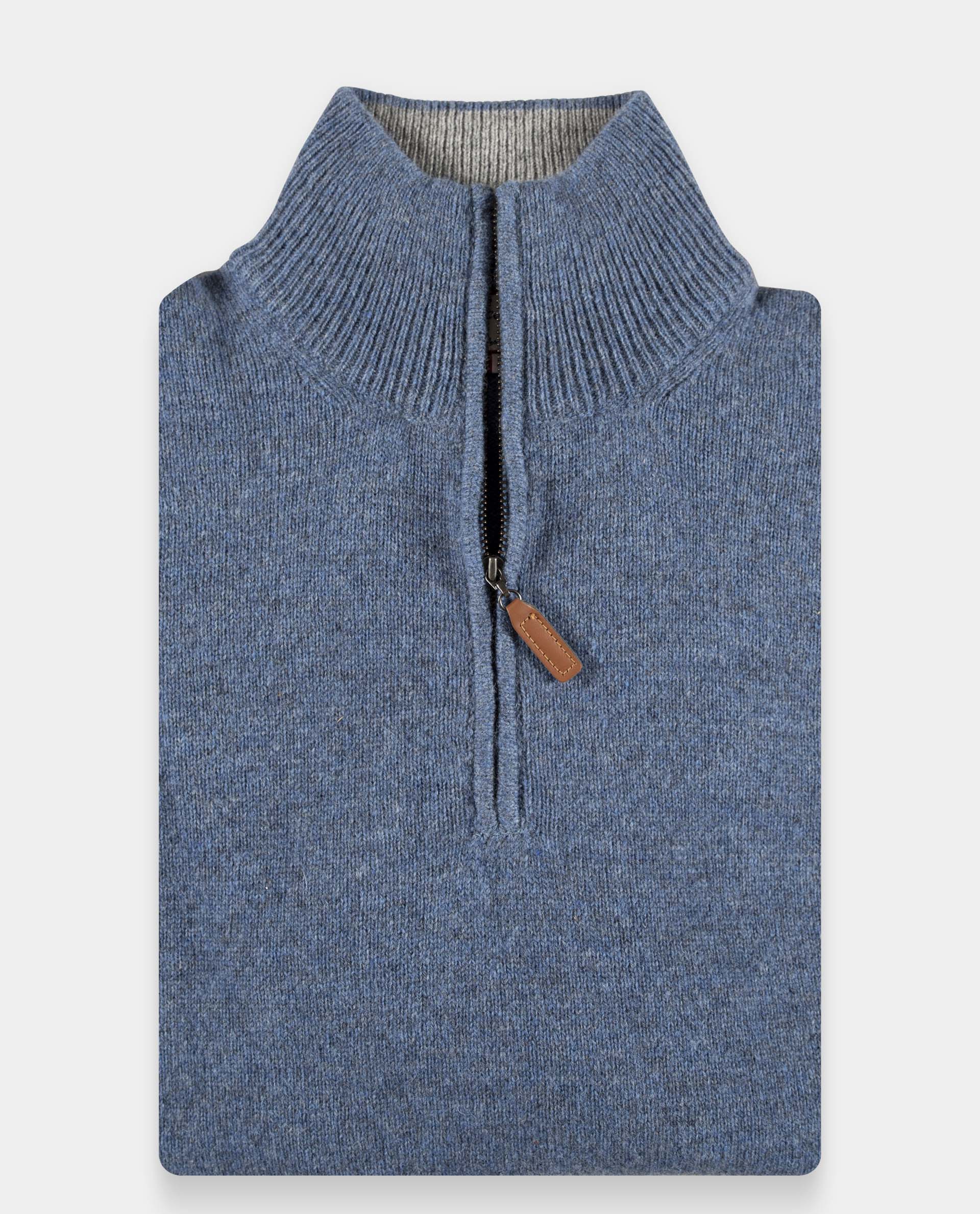Pull en jersey. Col zippé avec intérieur contrasté. Manches longues. Finition bord-côtes. Pure laine d'agneau.