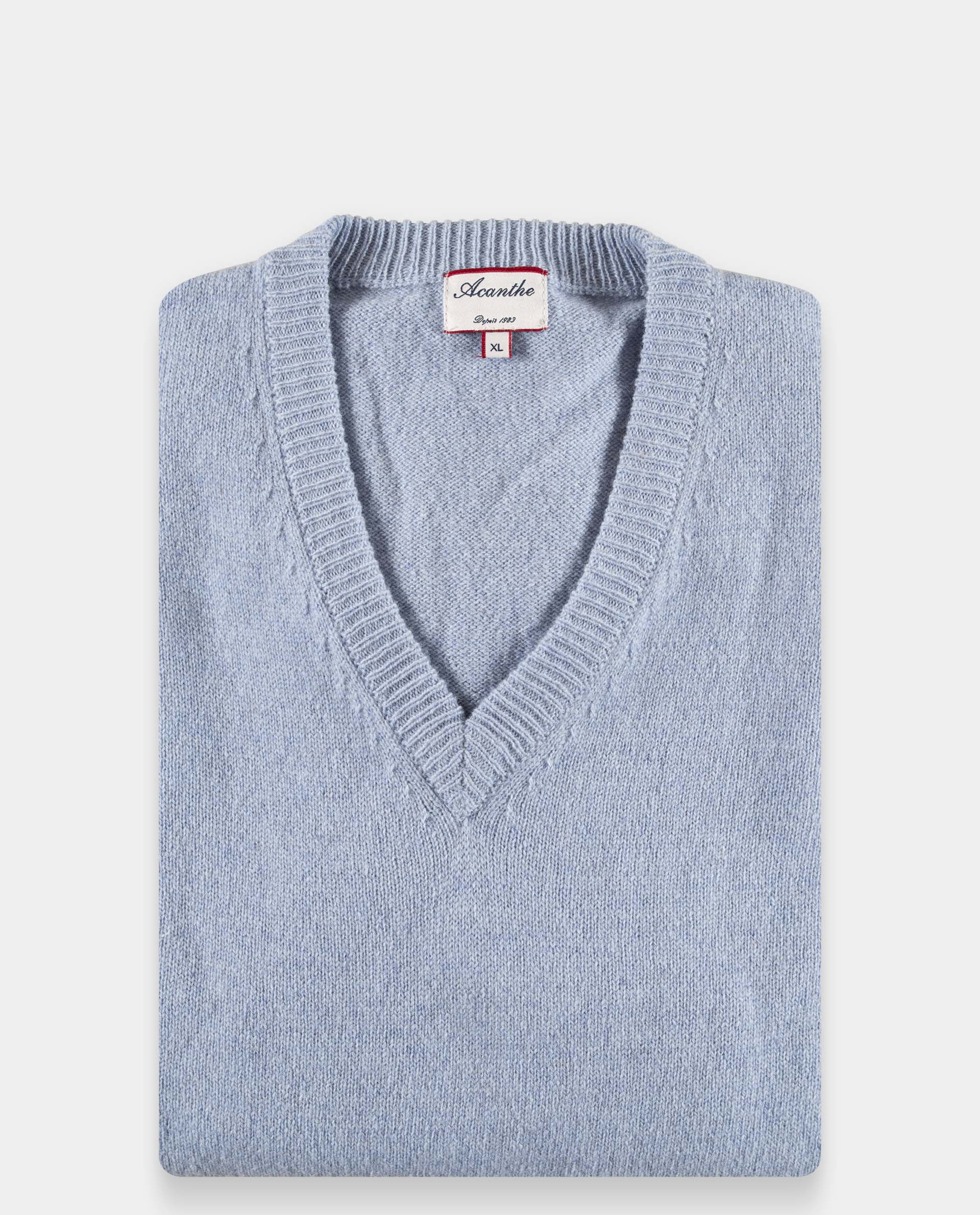 Pull col V en jersey. Manches longues. Finition bord-côtes. Pure laine d'agneau.