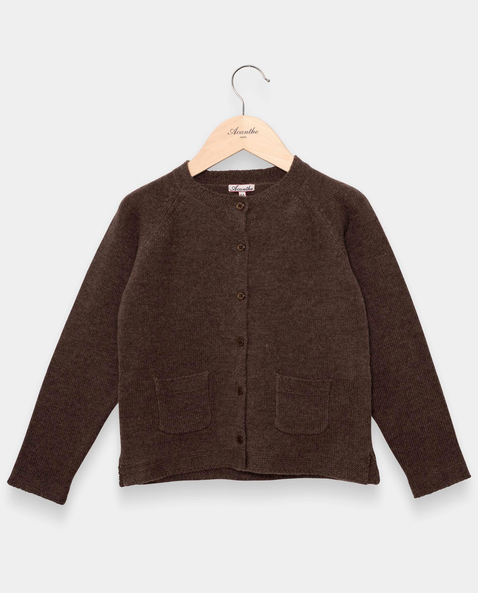 Cardigan en maille jersey avec fente de chaque côté. Boutonnage au milieu devant. Finition point mousse. Pure laine d'agneau.