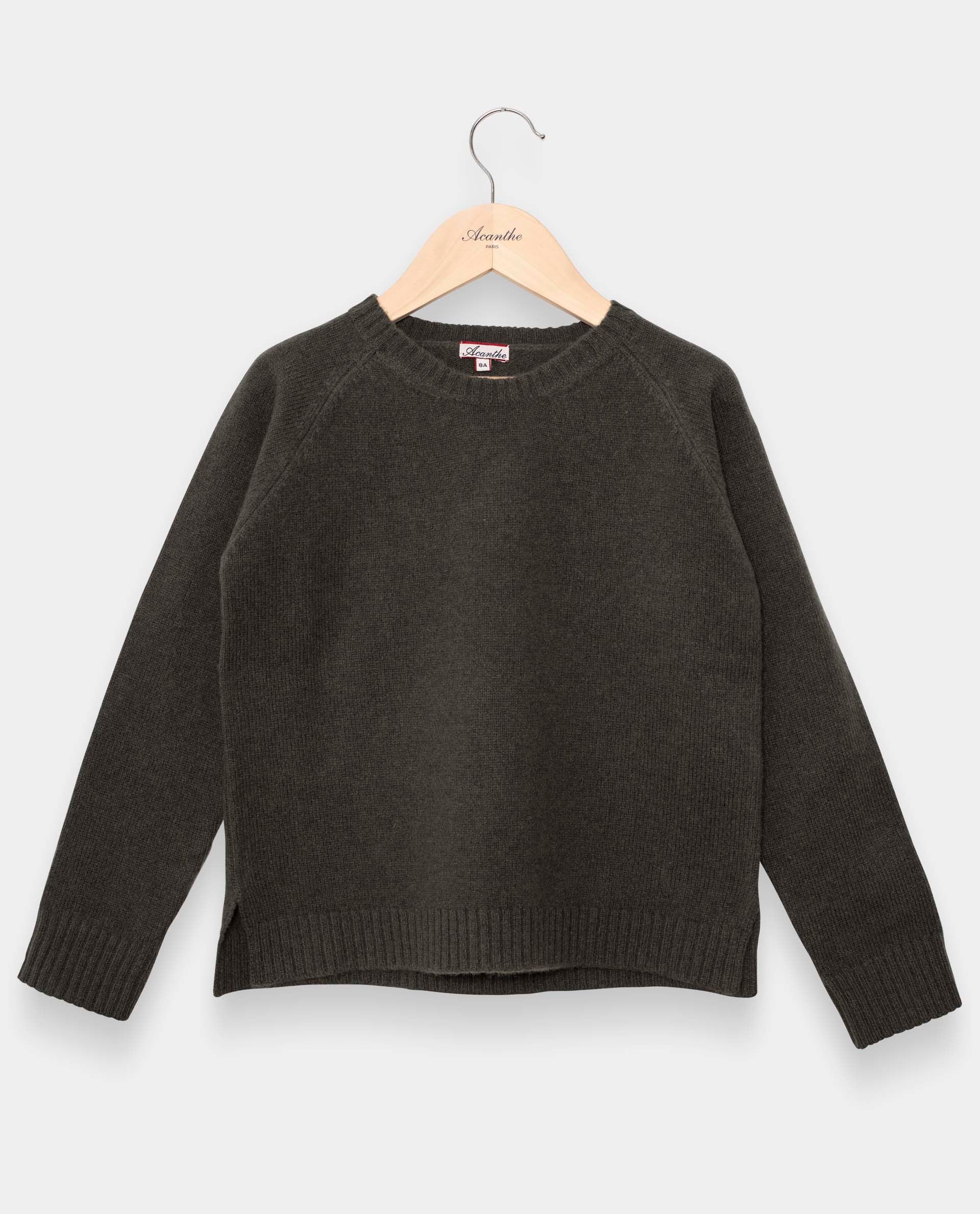 Pull encolure ronde en maille jersey avec fente de chaque côté. Finition bord-côtes. Pure laine d'agneau.