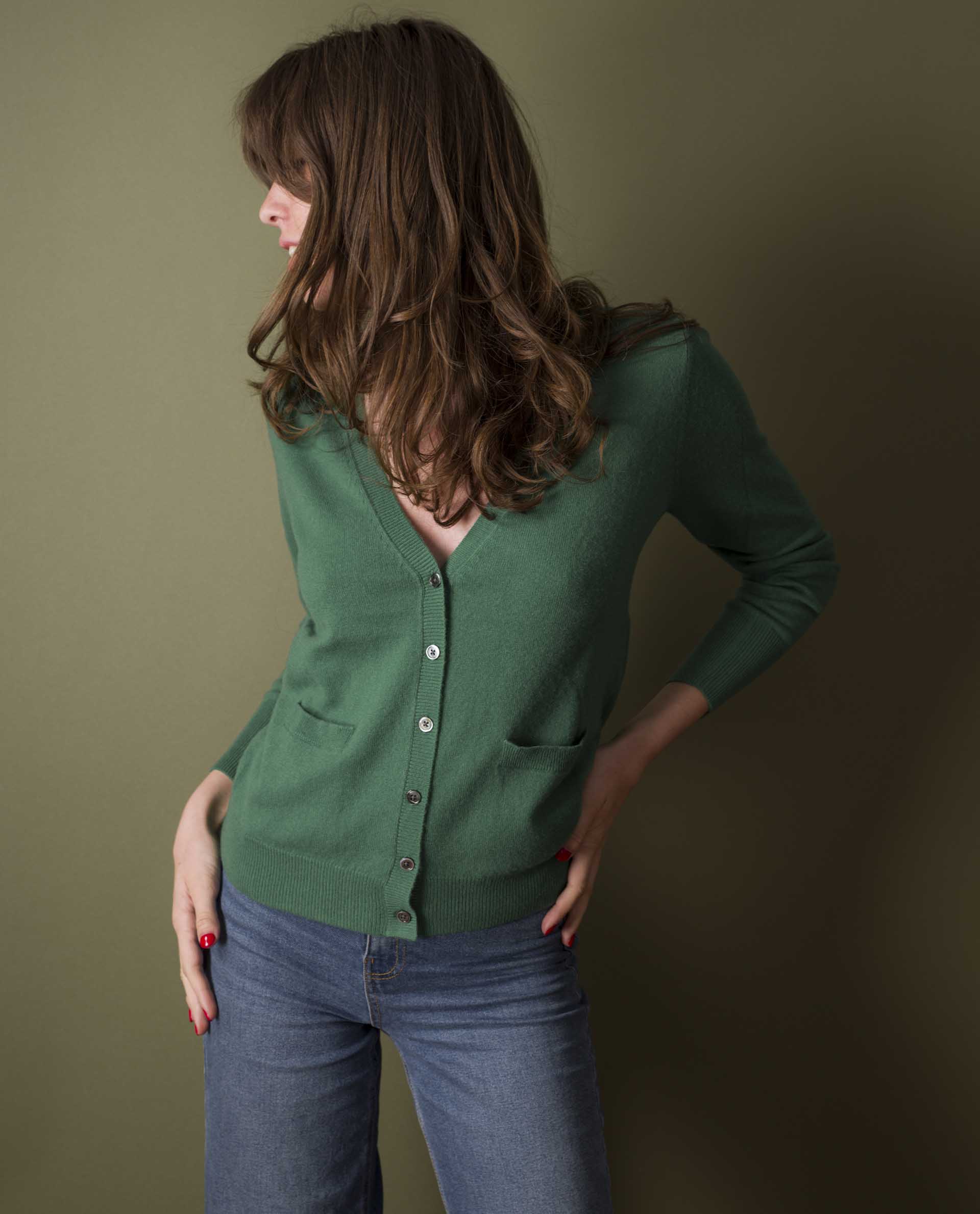 cardigan V 30 cachemire Vert