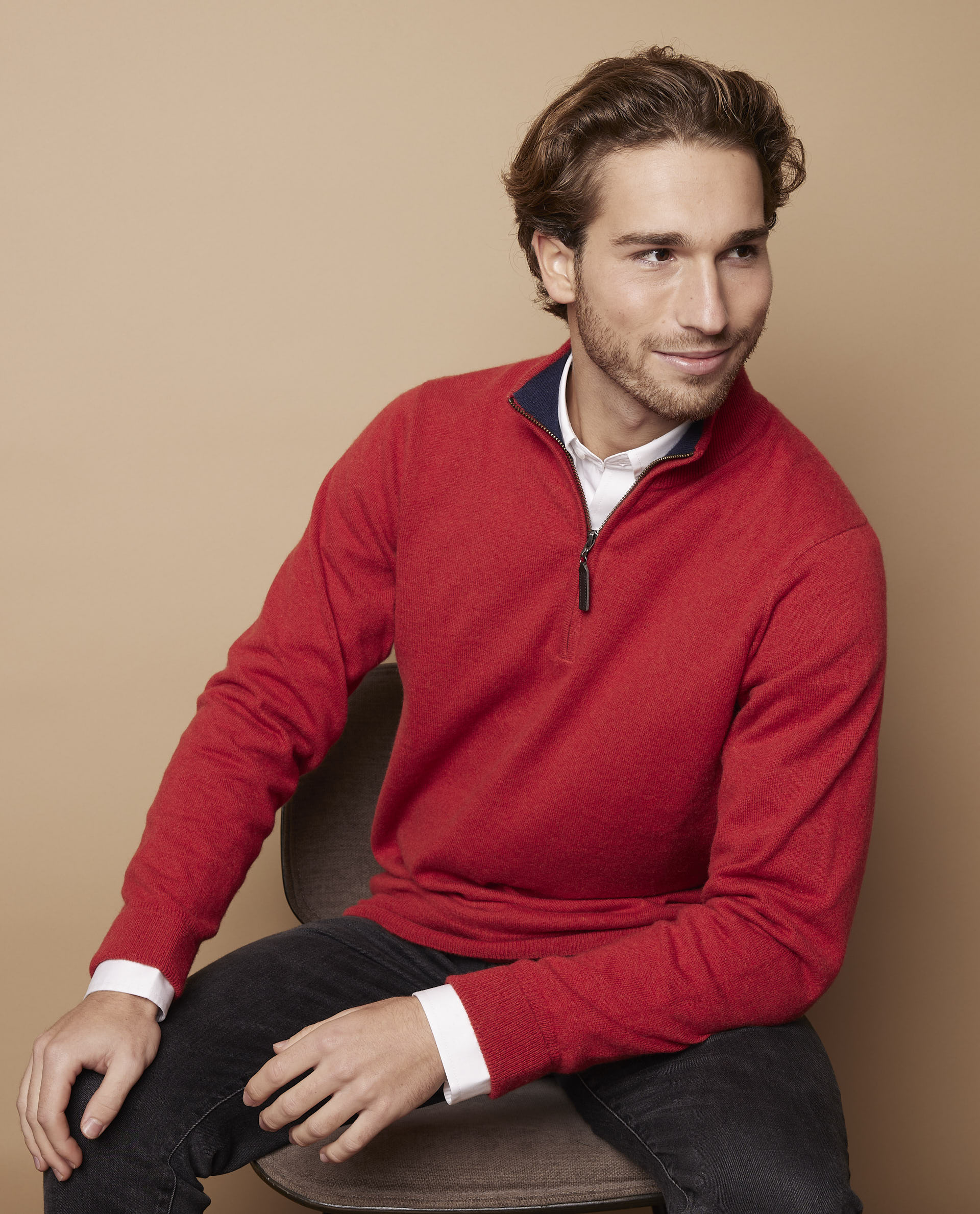 Pull zip camionneur 100 cachemire brique