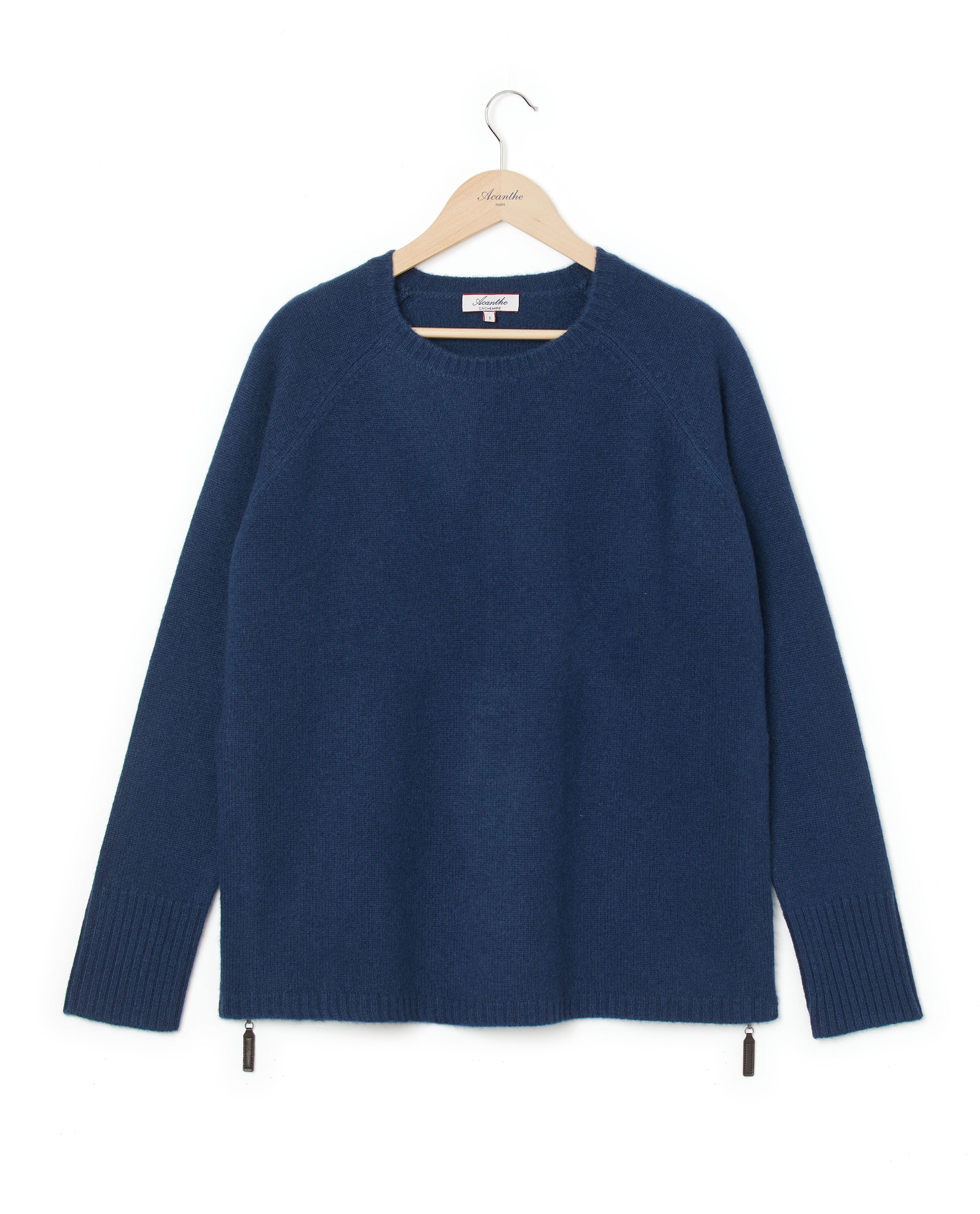 Large pull encolure ronde. Fente zippée de chaque côté. Finition bord-côtes.