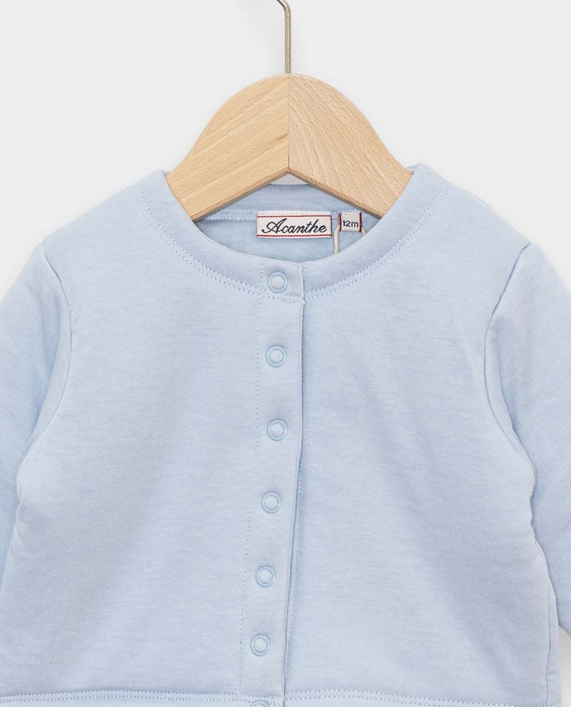 Boutons pression au milieu devant. Doublure rayée au bas de manche