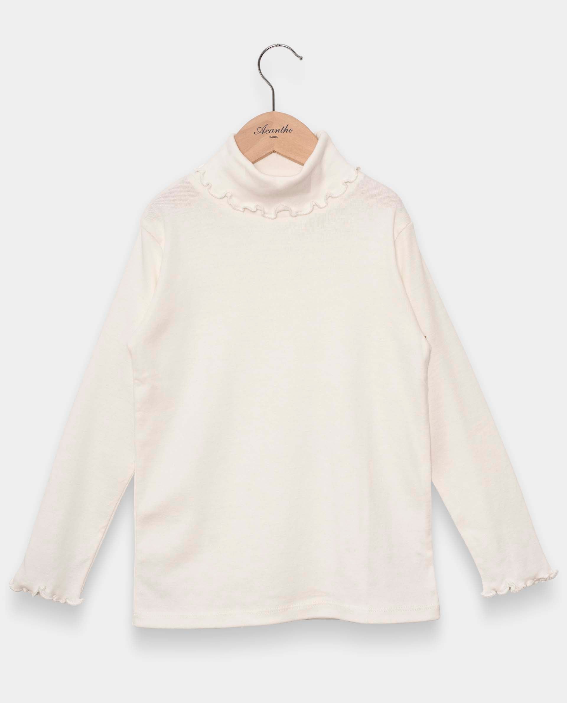 T-shirt manches longues col roulé en maille, finition point de bourdon au bas des manches et au col