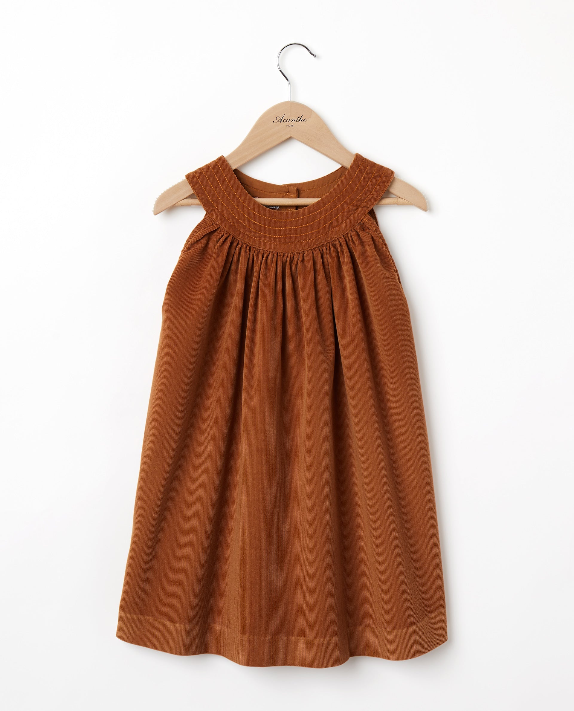 Robe trapèze en velours, empiècement au buste . Ouverture dos. Pur coton