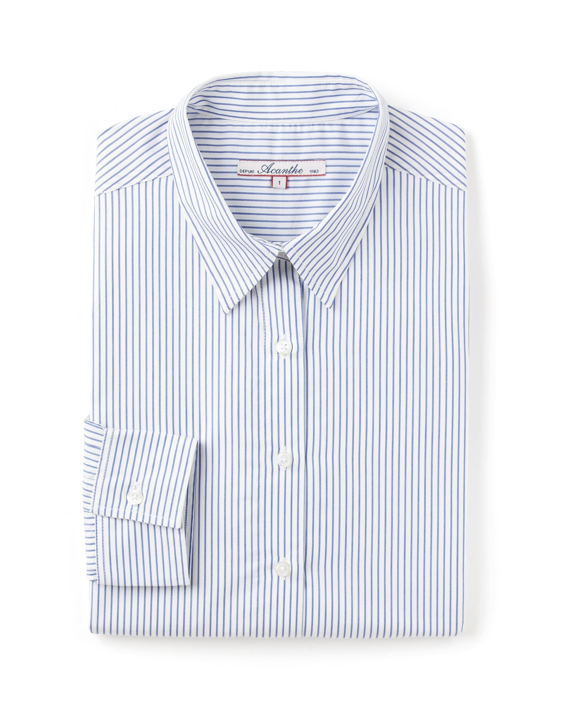 Chemisier classique manches longues, pli rond au dos. Popeline coton