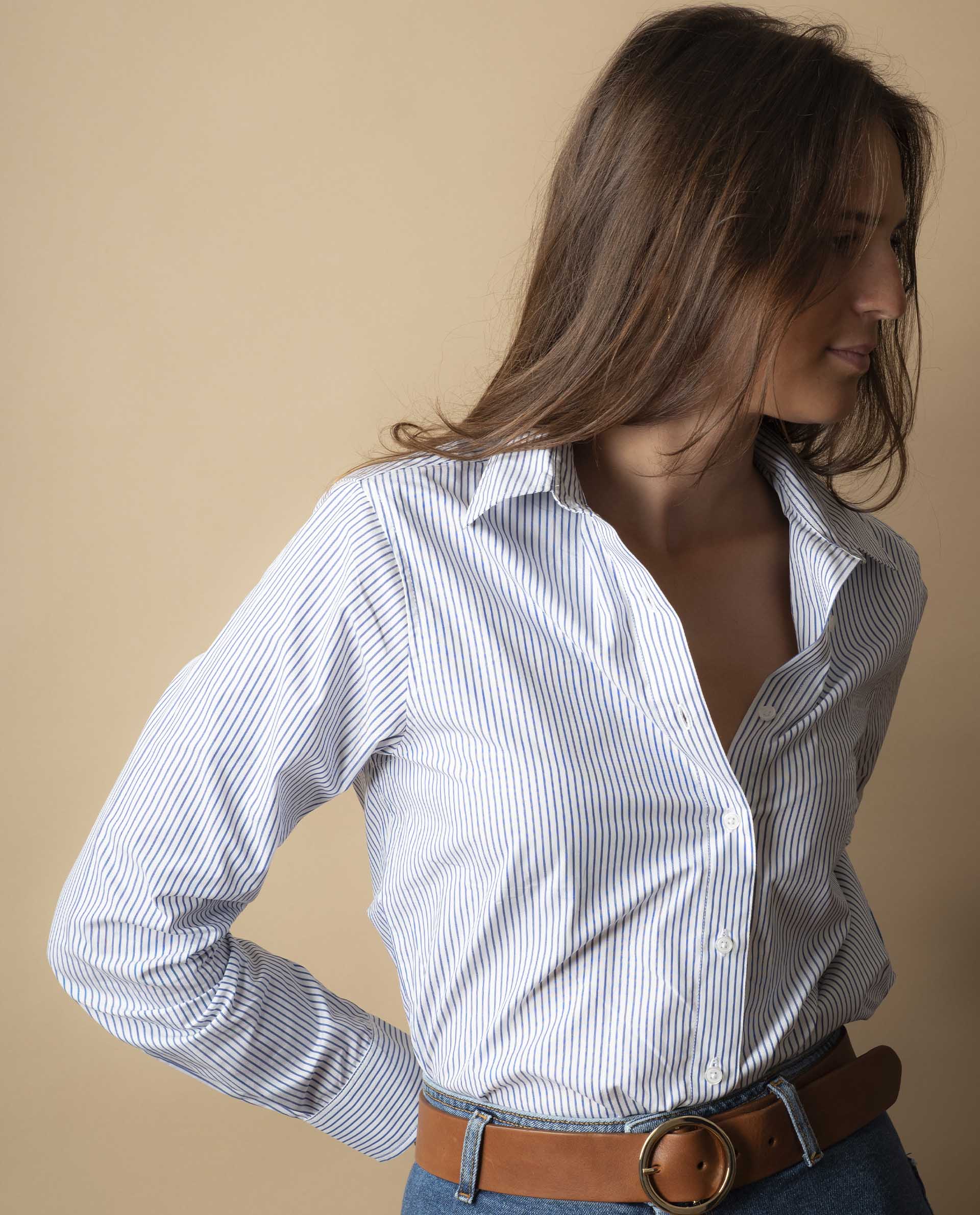 Chemisier classique manches longues. Popeline coton.
