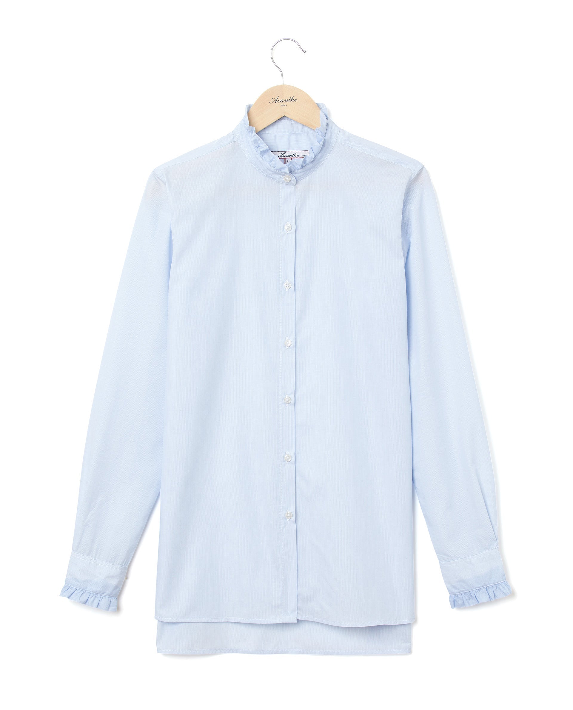Chemisier manches longues avec petit volant au col et aux poignets. Popeline coton.