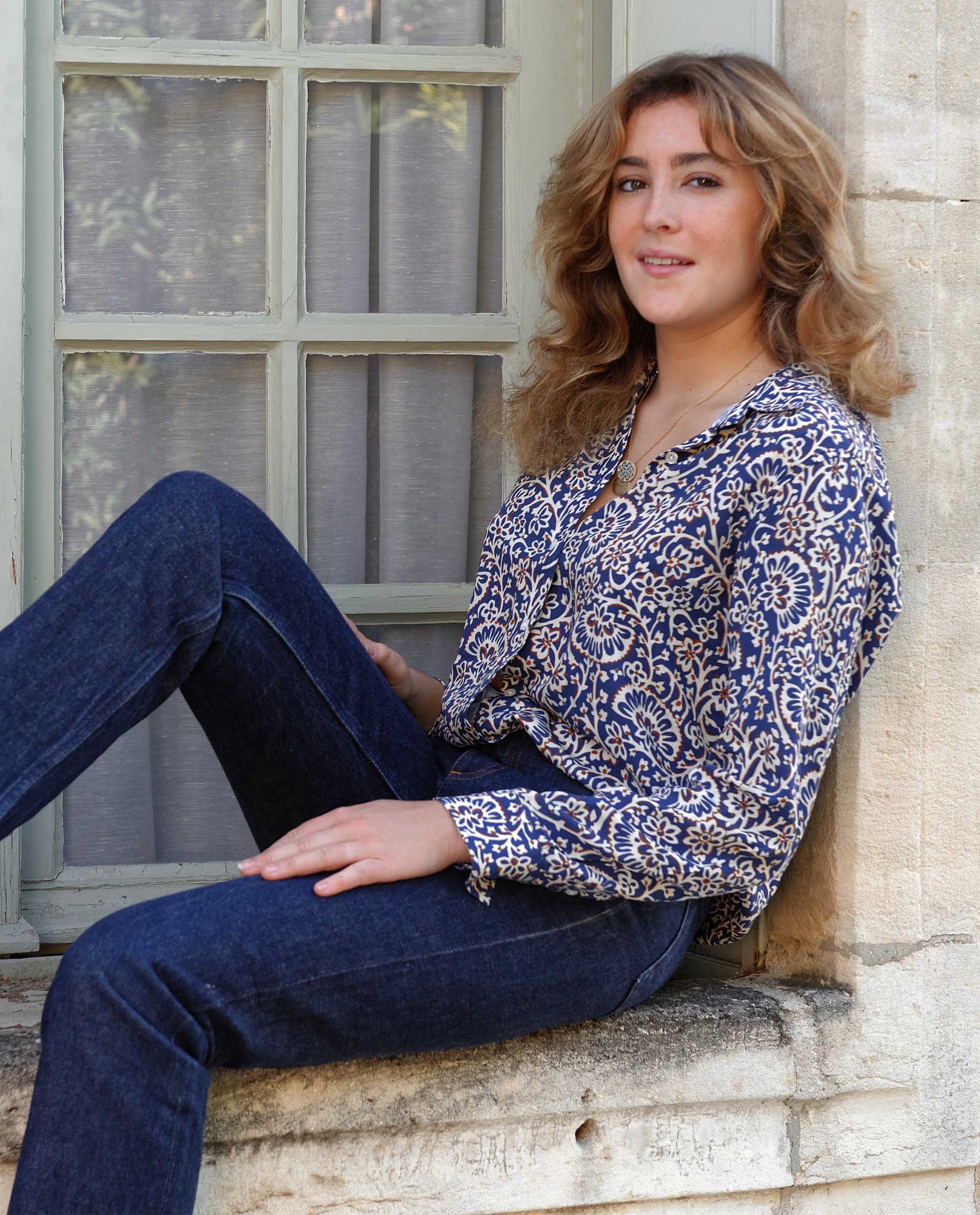 chemisier classique pli rond viscose imprimé indien bleu