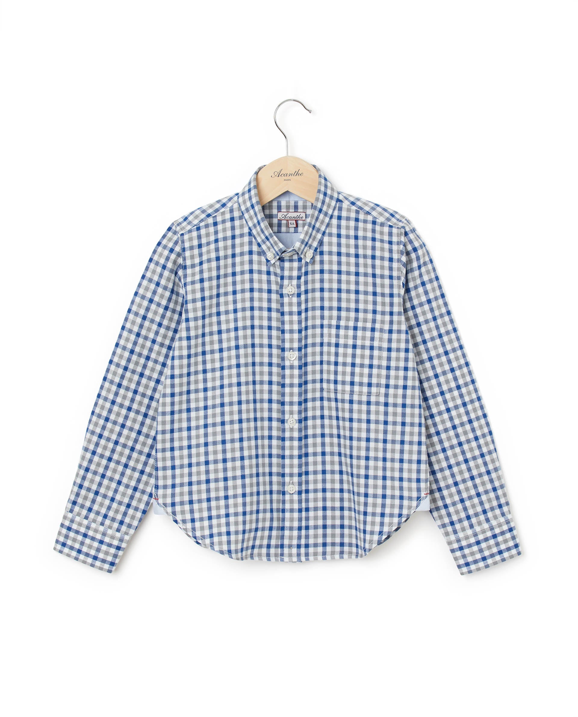 Chemise garçon. Manches longues. Poche poitrine. Empiècement dos avec pli rond. Pans arrondis au bas