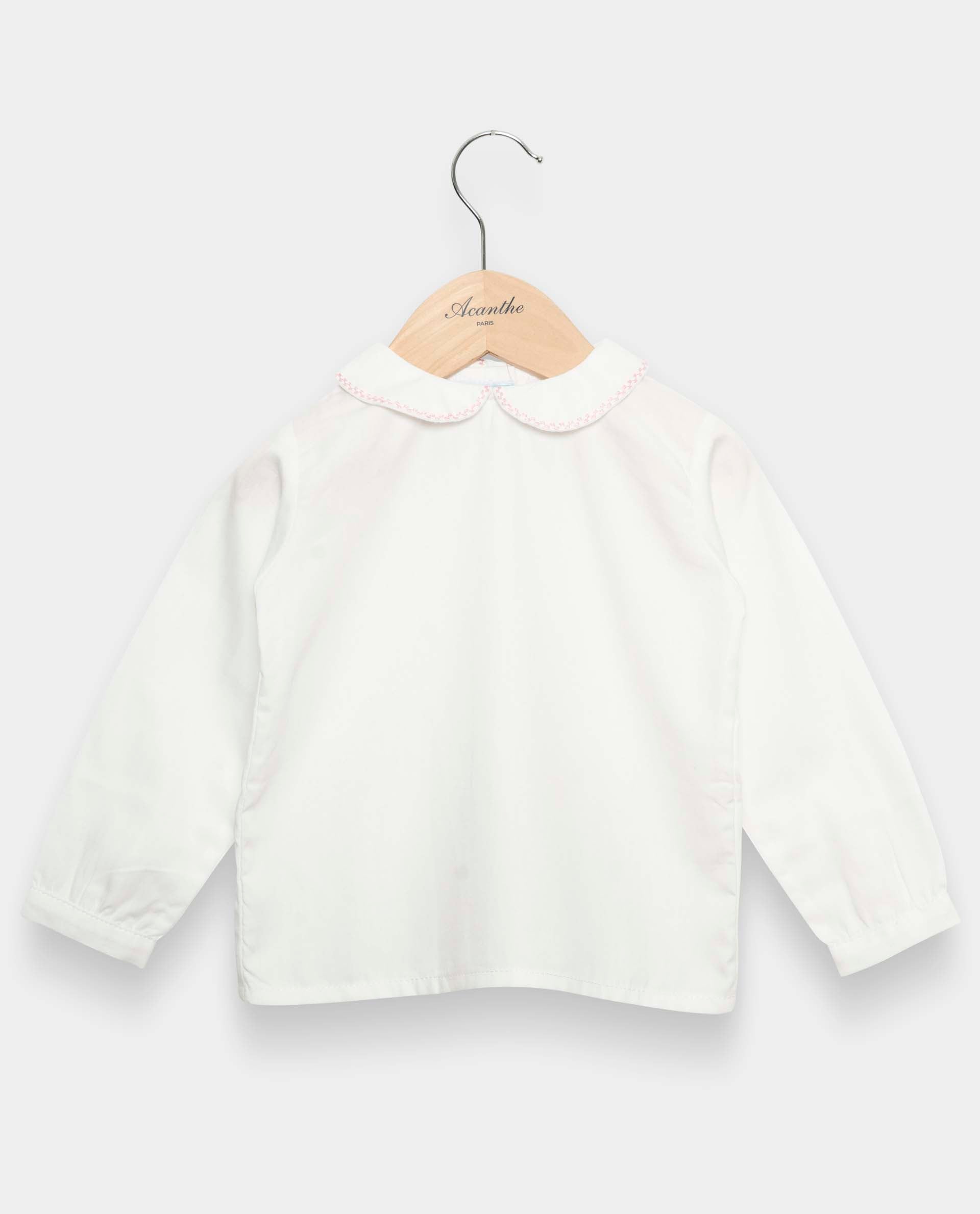 Chemisier en popeline de coton. Manches longues resserrées par un bracelet boutonné. Finition liseré rose au col. Boutonnage milieu dos