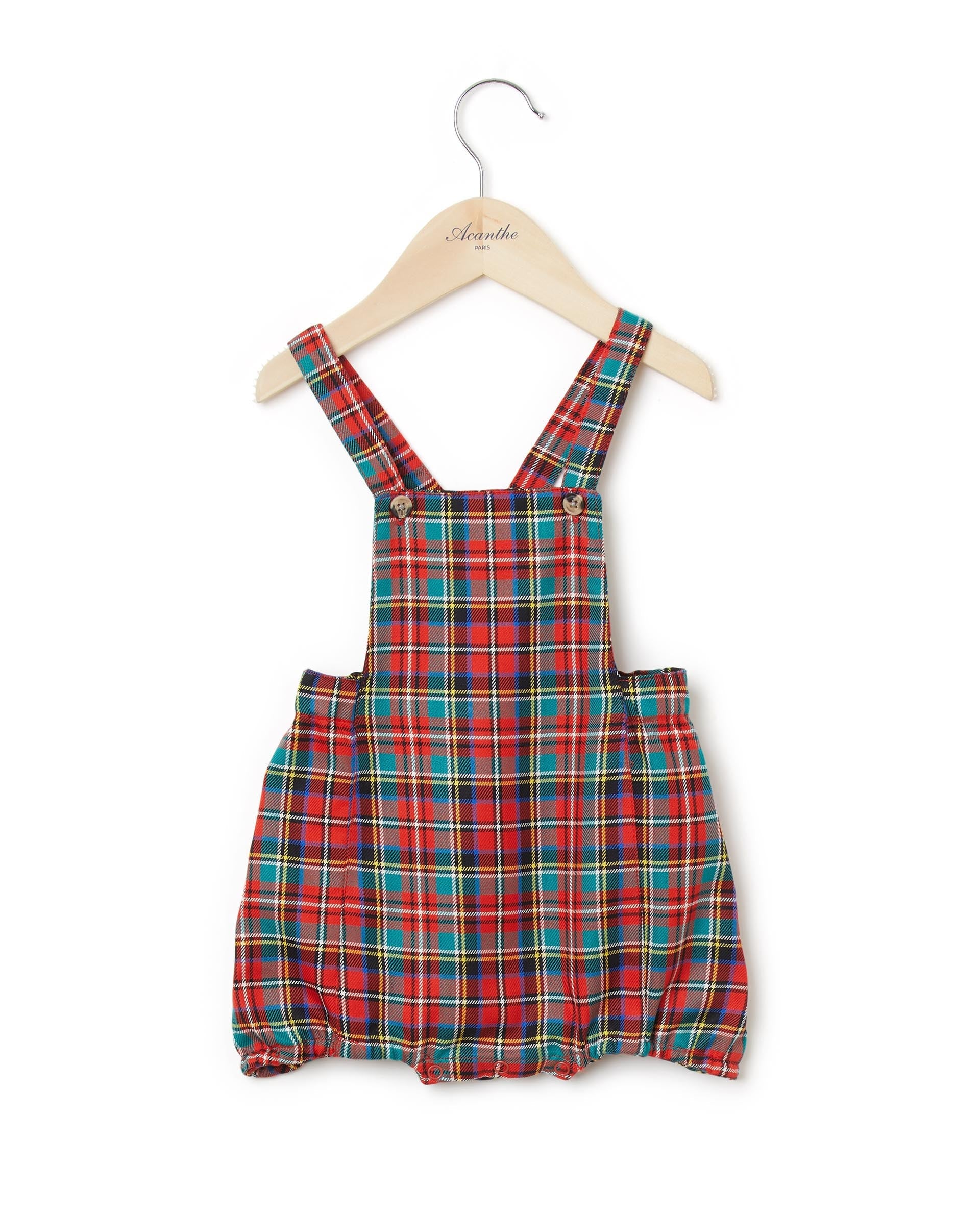 Culotte bouffante. Bas de jambe élastiqué. Bretelles croisées au dos se boutonnant devant dans la bavette. Pur coton