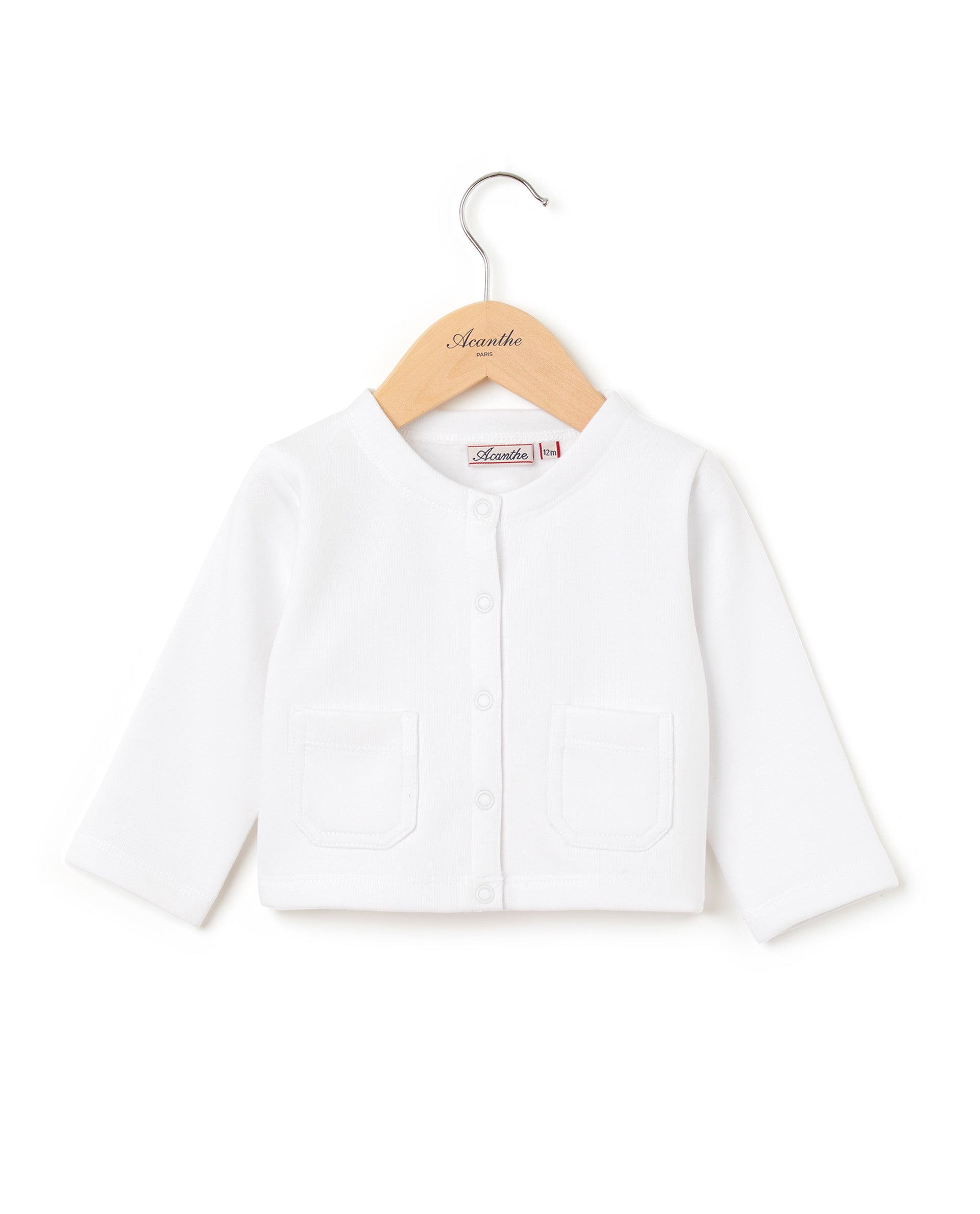 Cardigan bébé en molleton. Encolure ronde. Manches longues. Boutons pression au devant.