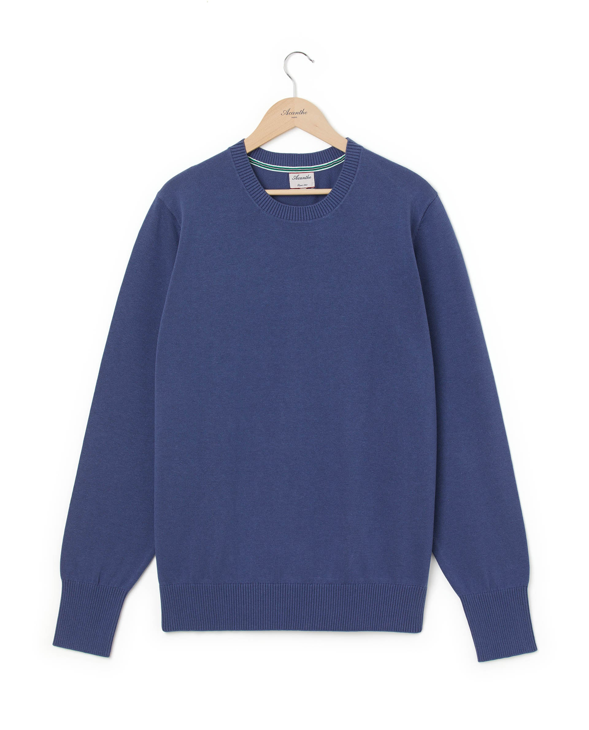Pull encolure ronde en coton. Finitions bords côtes.