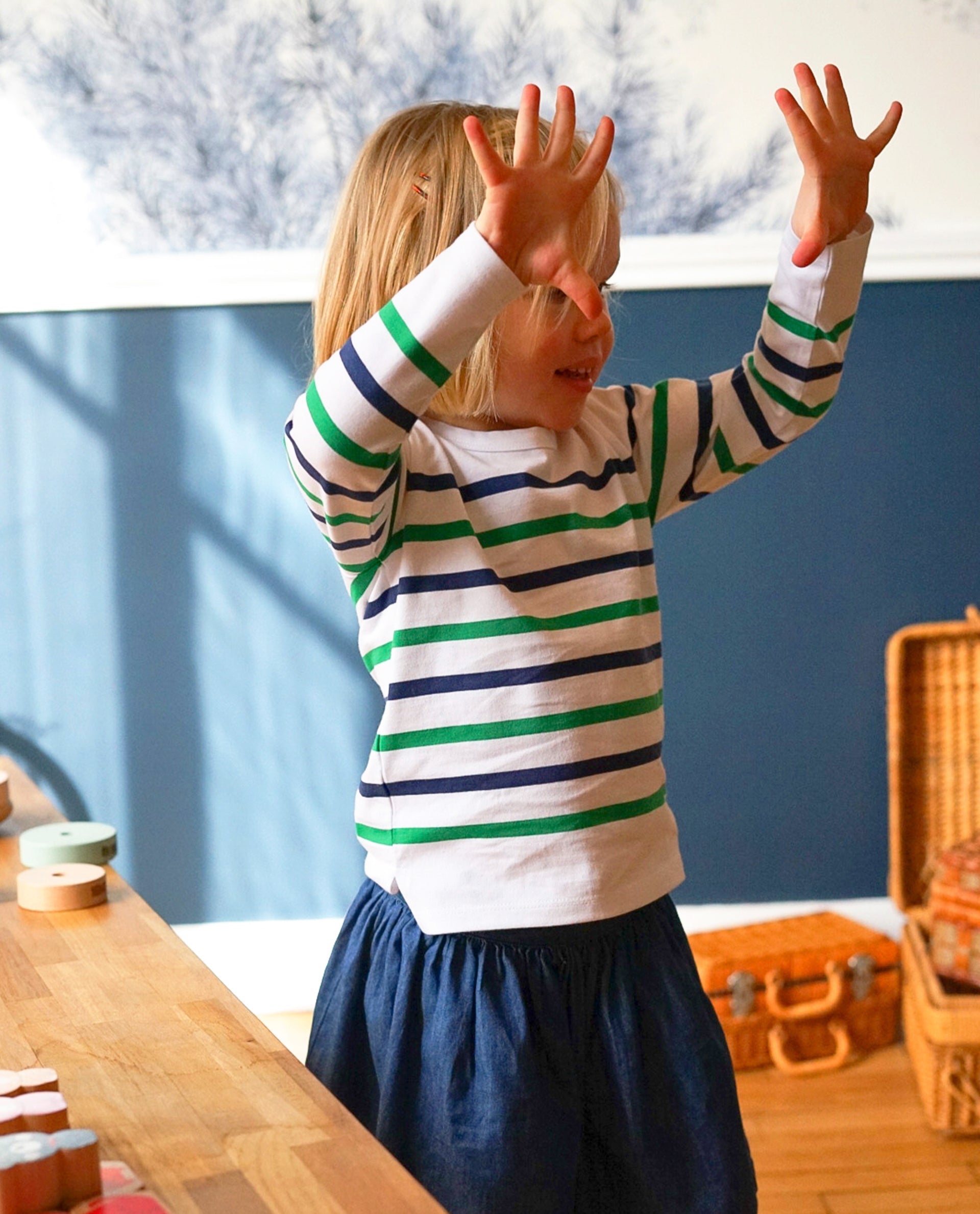 Marinière en jersey de coton. Rayures contrastées marine et vert.