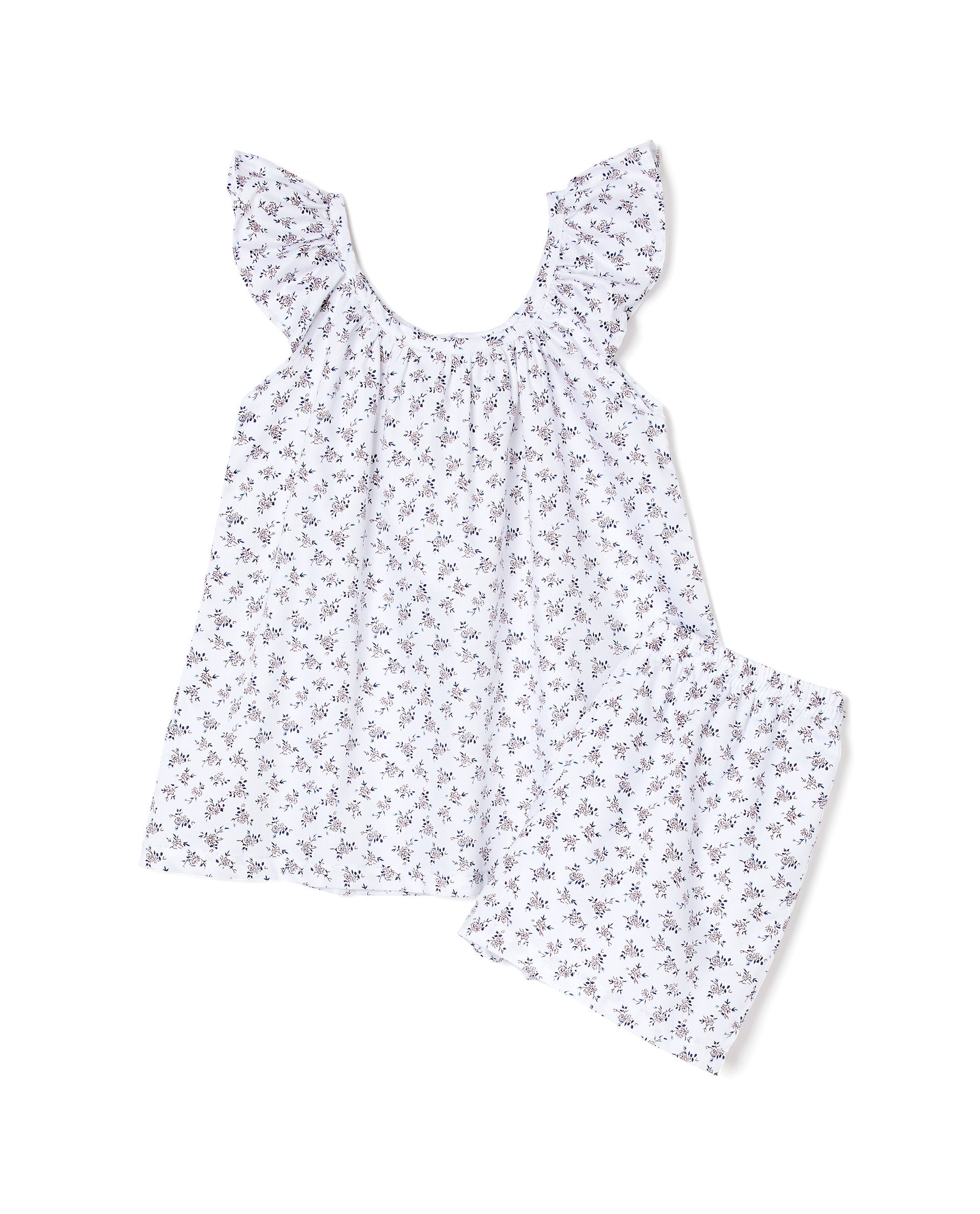 Pyjama d'été. Ensemble short et top avec volant à l'épaule. Popeline de coton.
