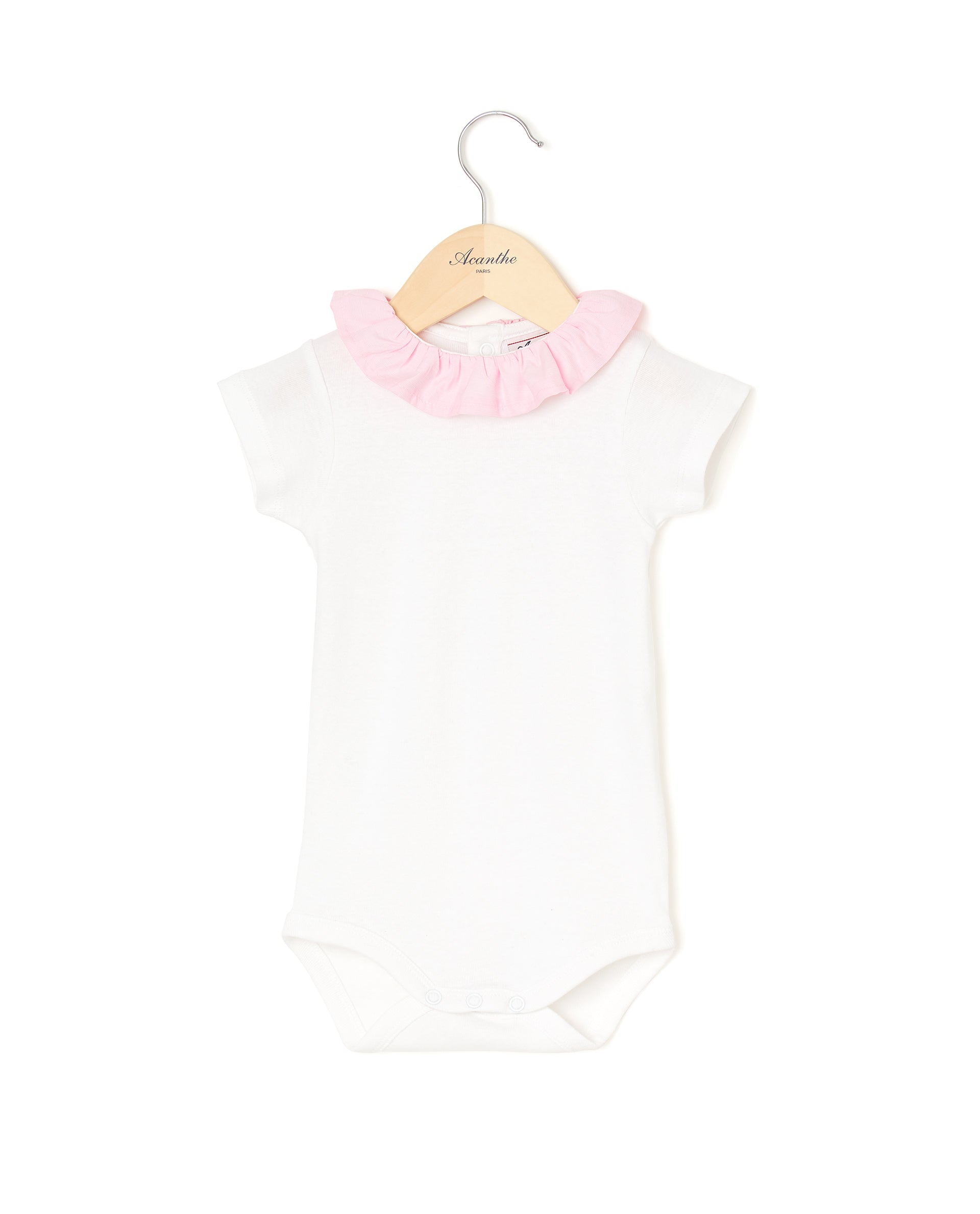 Body manches courtes en pur coton. Boutons pression à l'entrejambe. Col volanté en popeline coton.