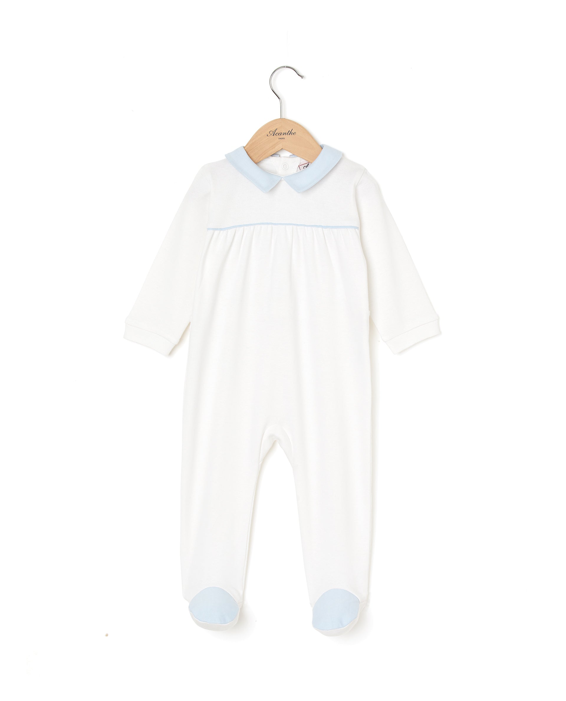 Pyjama bébé en coton. Col carré et pieds en popeline coton. Boutons pression au dos.