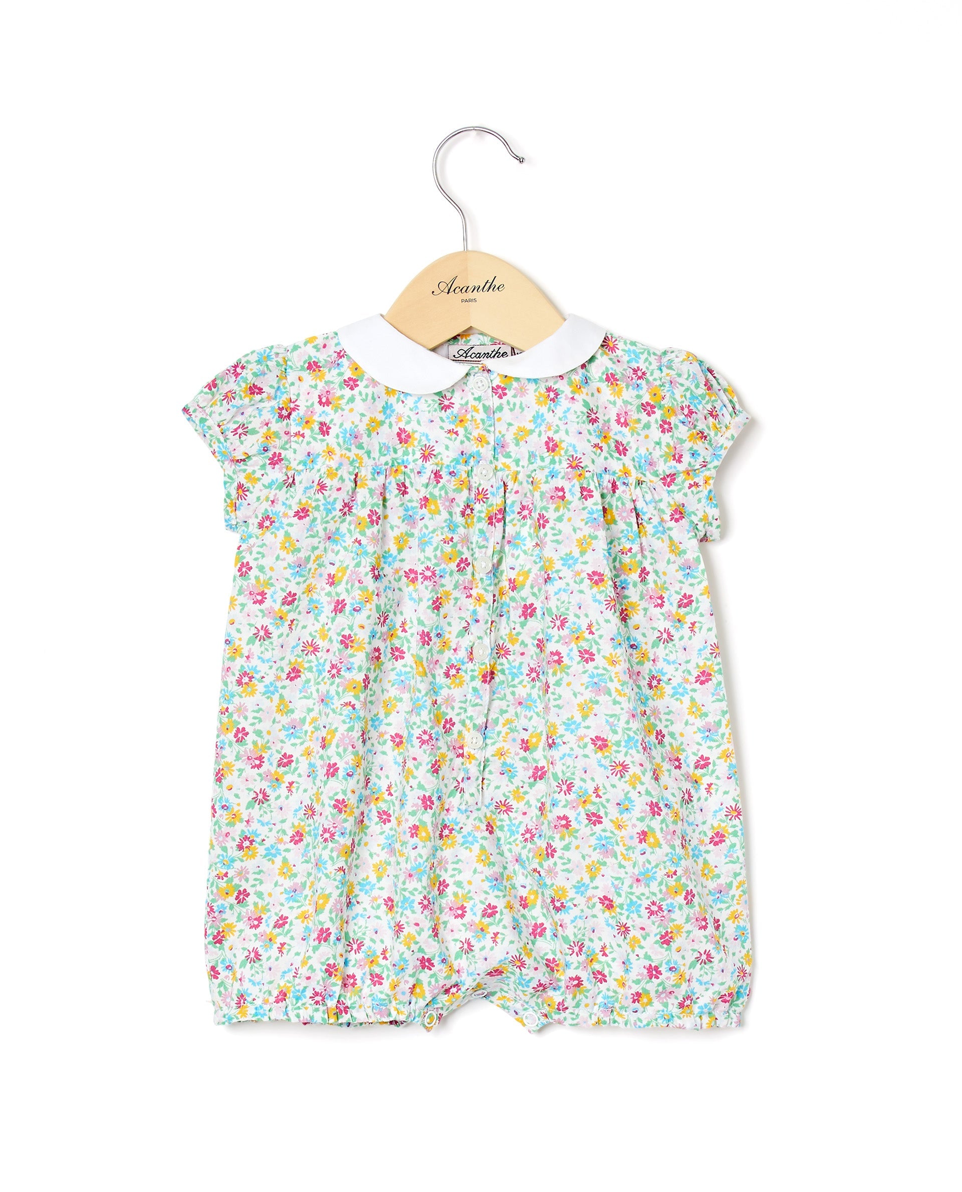 Barboteuse manches ballon boutonnée au dos. Col rond. Culotte bouffante.