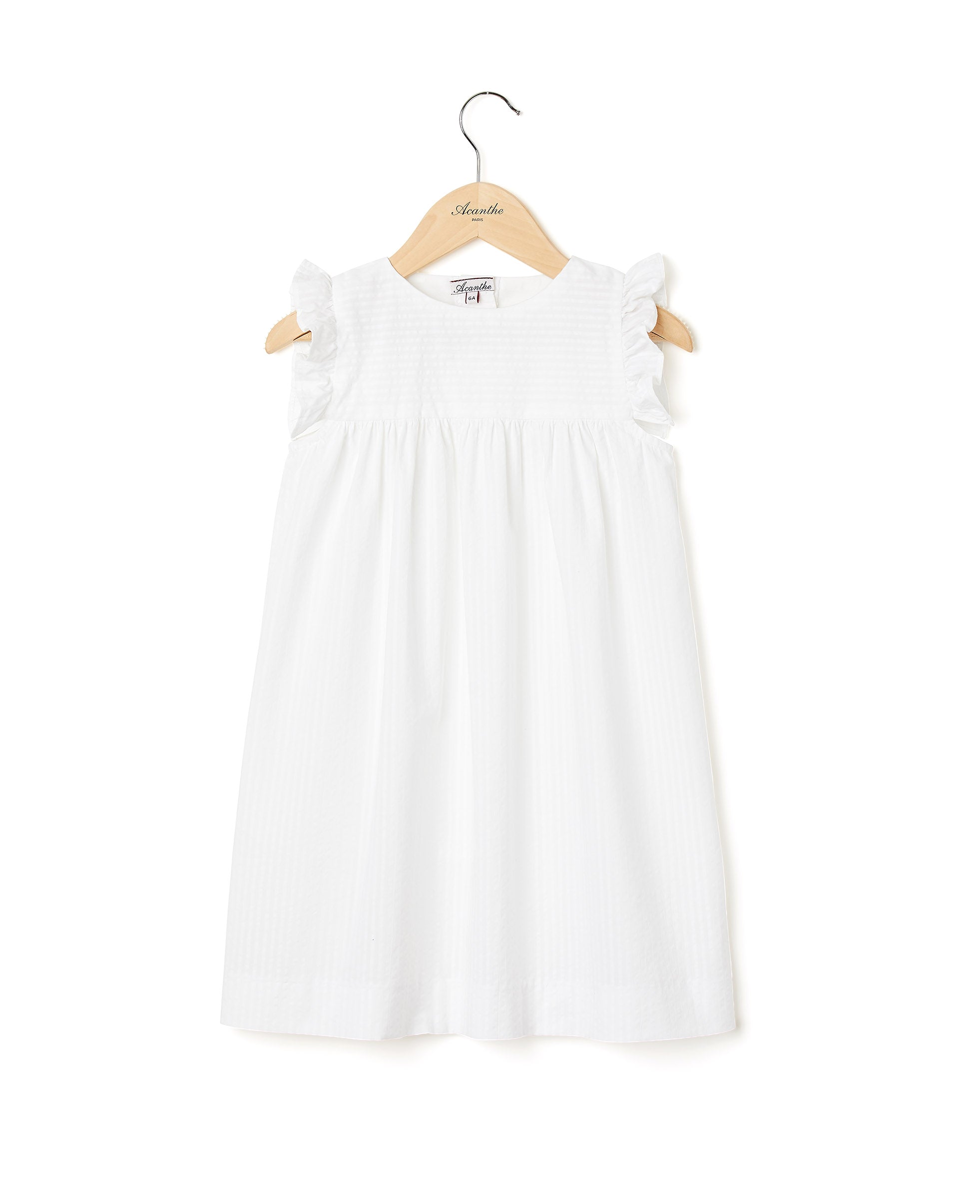 Encolure ronde devant et dos. Volant à l'épaule au niveau du buste. Boutonnage dos.