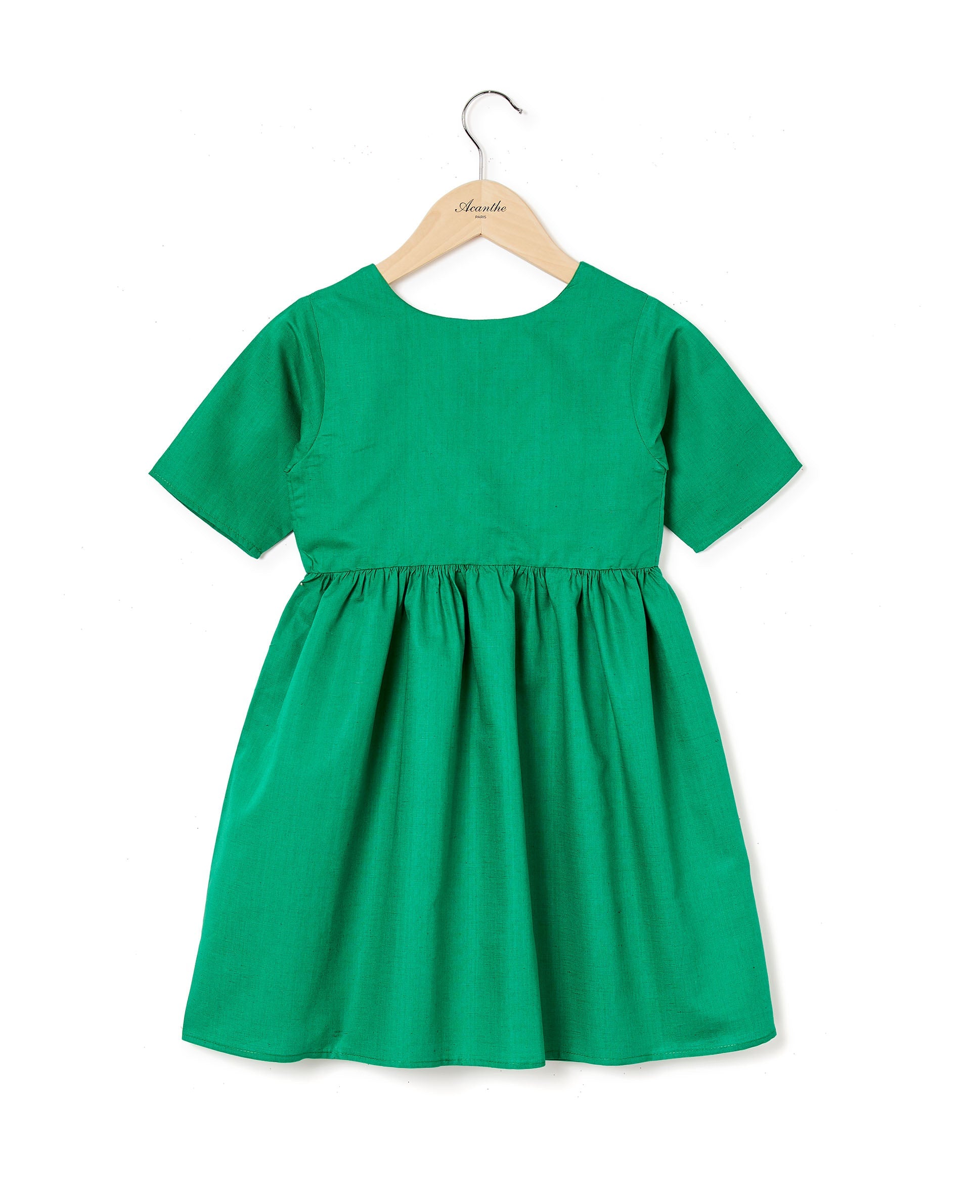 robe V dos lin coton Vert