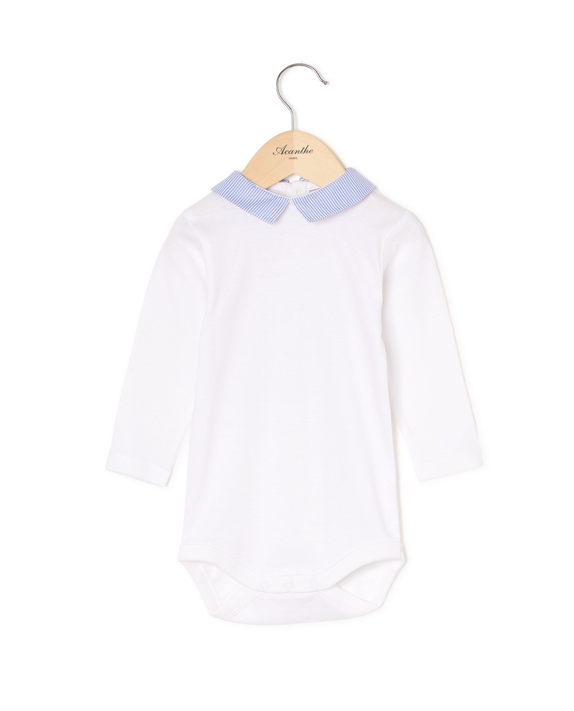 Body manches longues en pur coton. Patte boutonnée au dos. Entrejambe pressionné. Petit col carré en coton fil à fil.