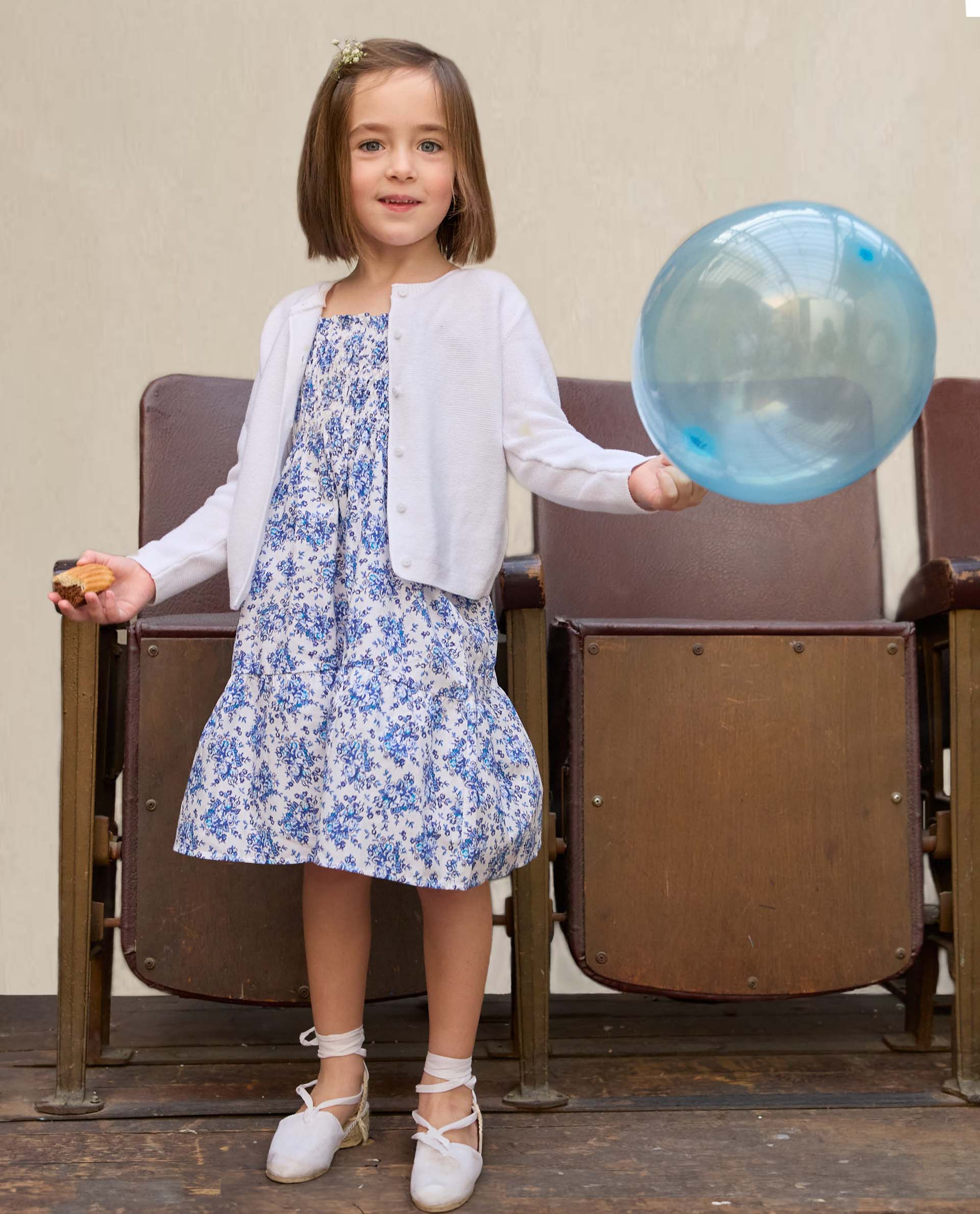 Cardigan point mousse boutonné au milieu devant. Emmanchure kimono. Pur coton. On aime l’esprit ‘fait maison’ de ce pull tricoté en point mousse. Il enveloppe l’enfant de confort. Le coton est une fibre végétale, hypoallergénique. C’est une matière avec un bon pouvoir absorbant et isolant : il supporte bien la chaleur.