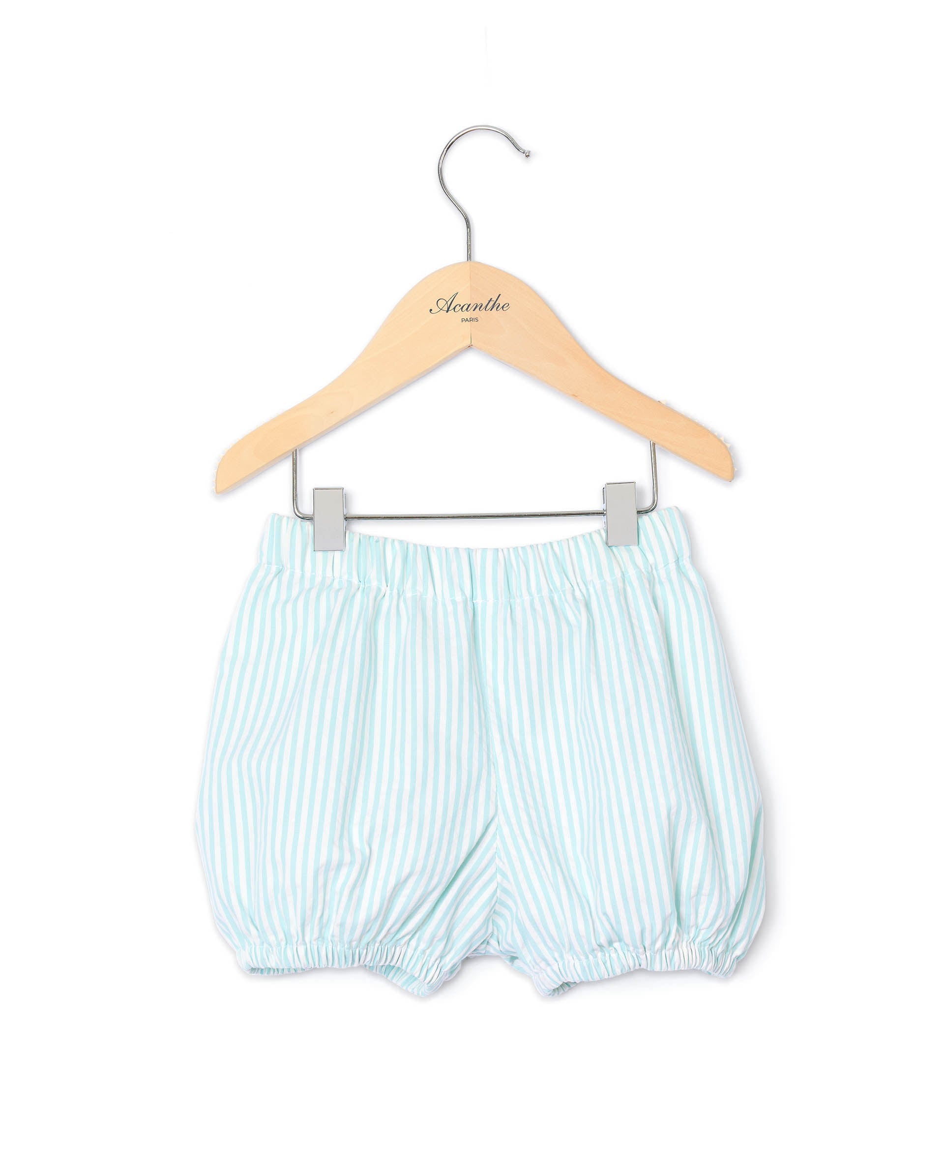 Culotte bouffante en seersucker 100% coton. Taille et bas de jambe élastiqués. Le coton est une fibre végétale, hypoallergénique. C’est une matière avec un bon pouvoir absorbant et isolant : il supporte bien la chaleur.