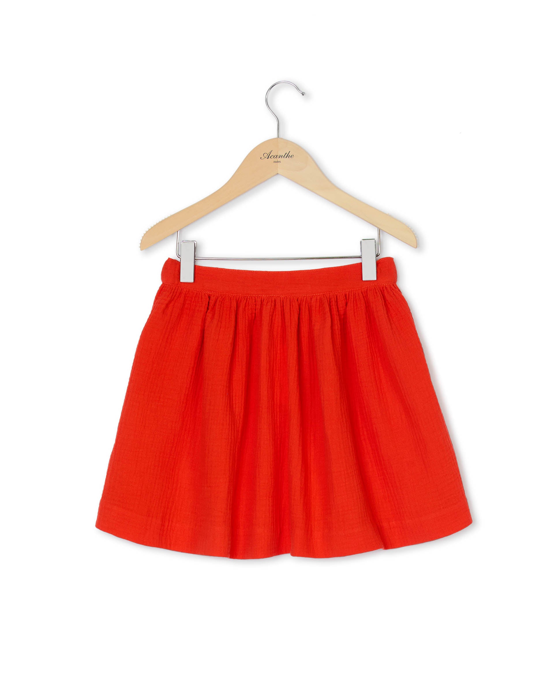 Double gaze de coton. Ceinture élastiquée au dos, plate devant. On adopte la gaze de coton pour sa légèreté et son aspect légèrement gaufré.
