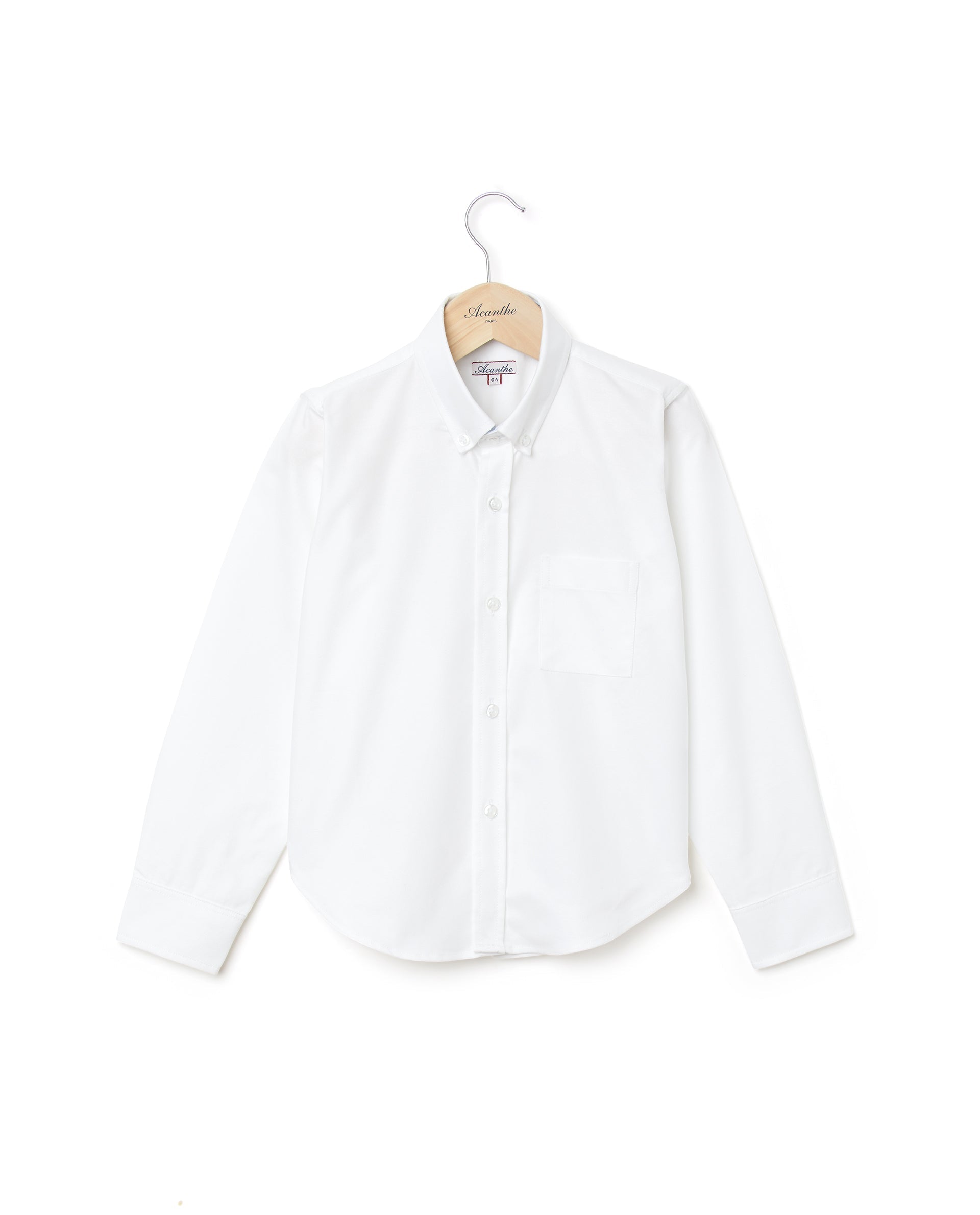 Chemise garçon en oxford. Manches longues. Poche poitrine. Pli rond au dos. Pans arrondis au bas.