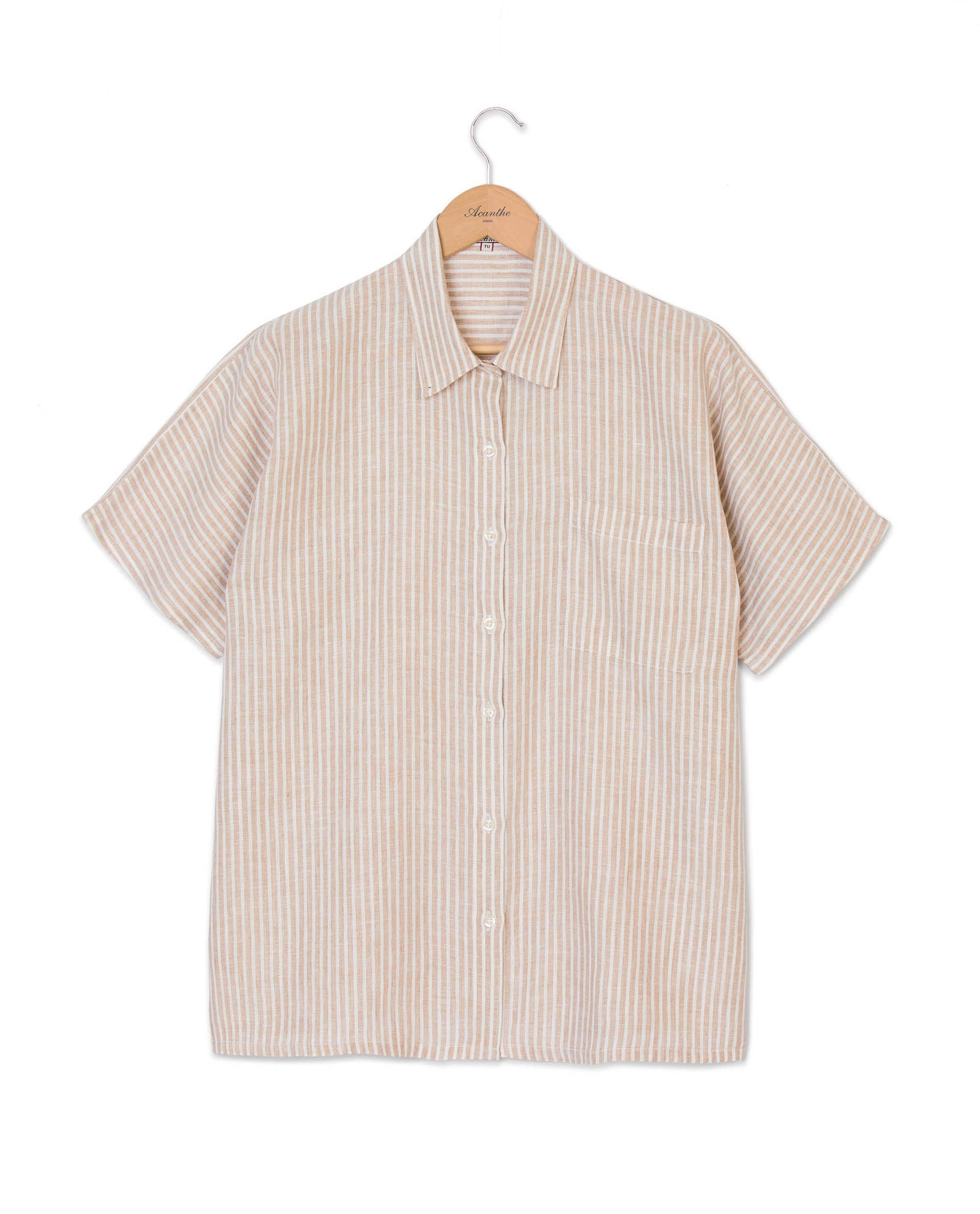 Chemisier manches courtes oversize. Pur lin. Taille unique. Le lin est une fibre naturelle, résistante et anallergique. C’est une matière respectueuse de la nature car le lin ne nécessite aucune irrigation : il trouve l’eau directement dans le sol et les précipitations.
